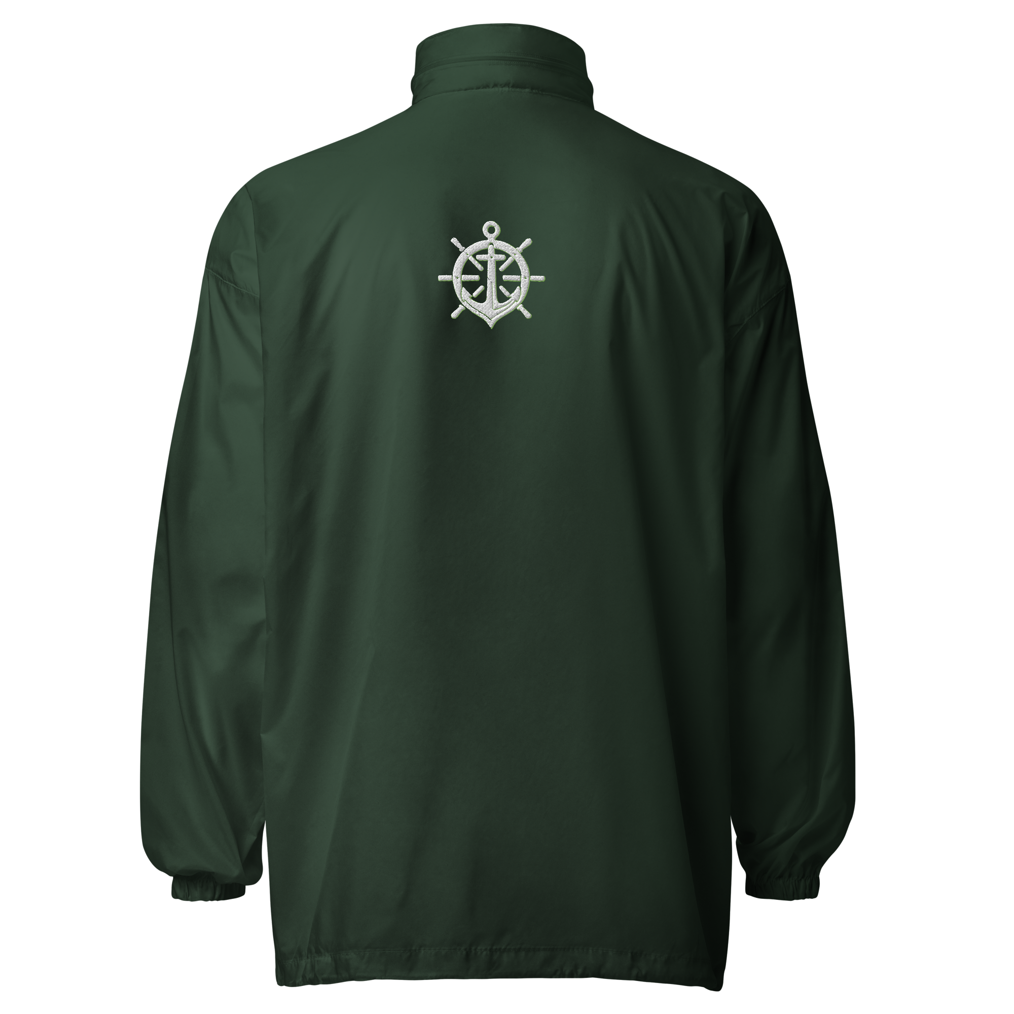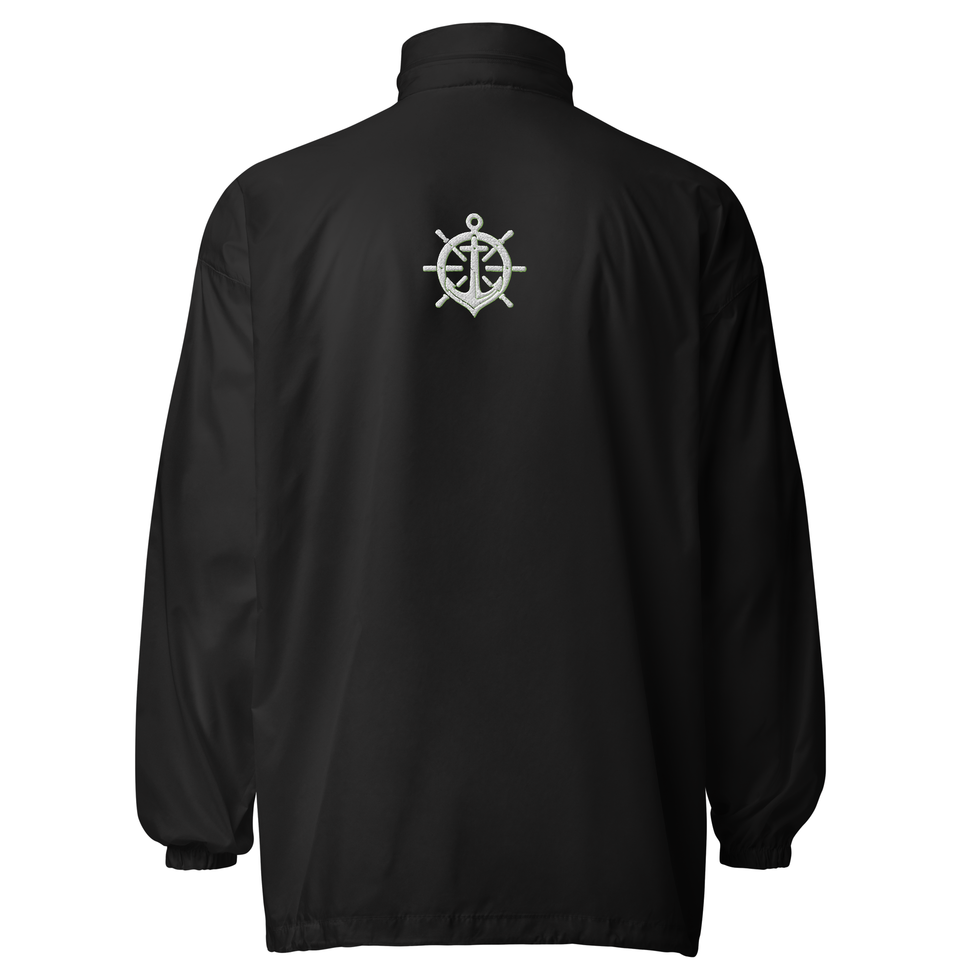 Leicht, packbar, nordisch klar: Der „KiezKind Streetwear Windbreaker“ kombiniert Funktion mit Understatement. Dezenter Bruststick (links) und ein feiner Rückenstick setzen zurückhaltende Akzente – perfekt für City, Reisen und Abende am Wasser.