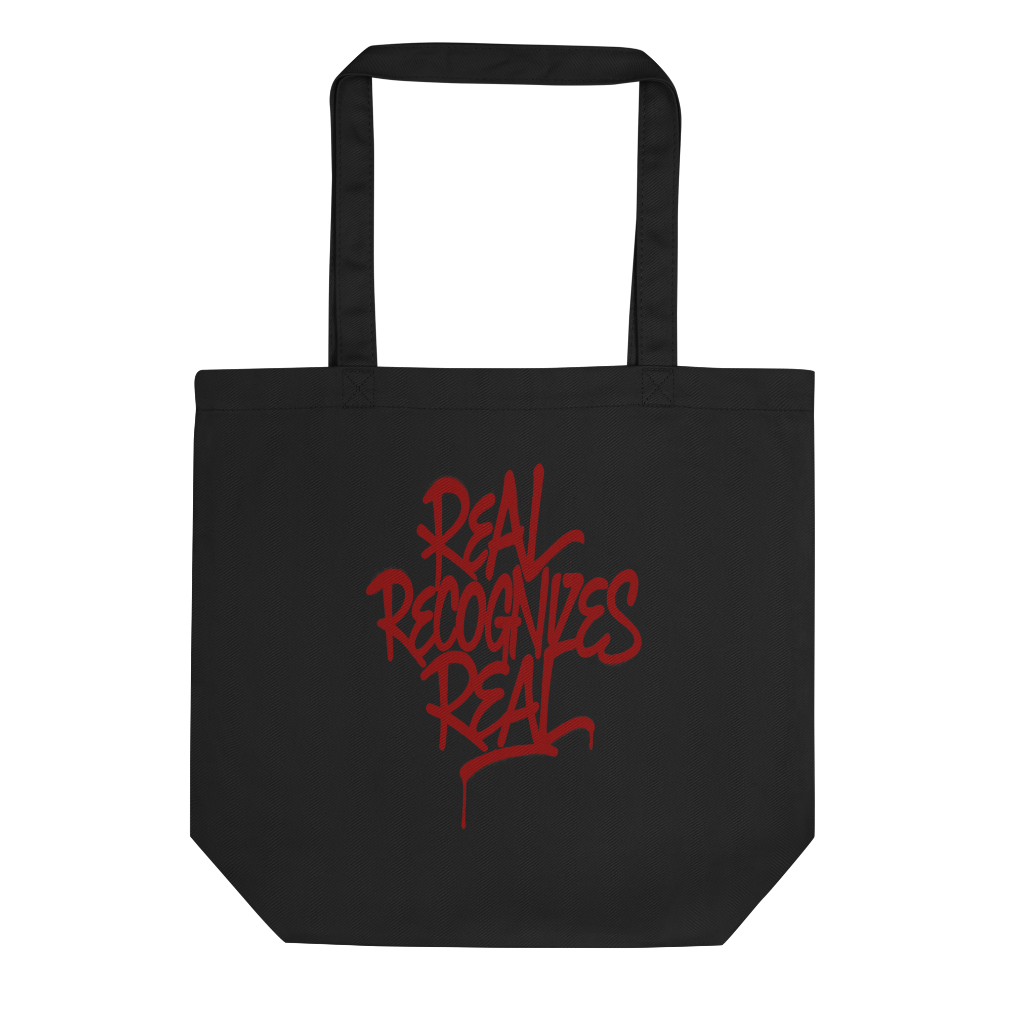Die kompakte Bio-Tasche für jeden Tag: robust, nachhaltig und mit klarem Statement. Frontmotiv „Real Recognizes Real“ – leise im Ton, stark in der Haltung.