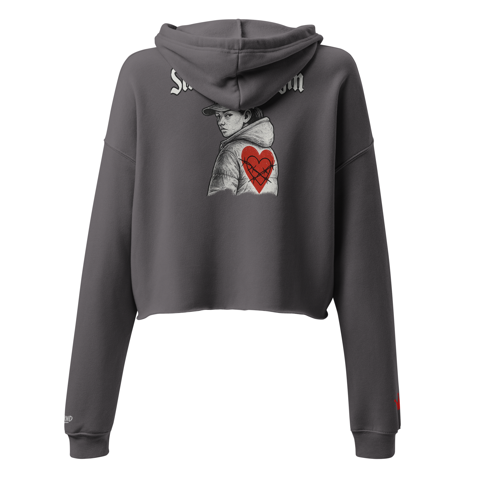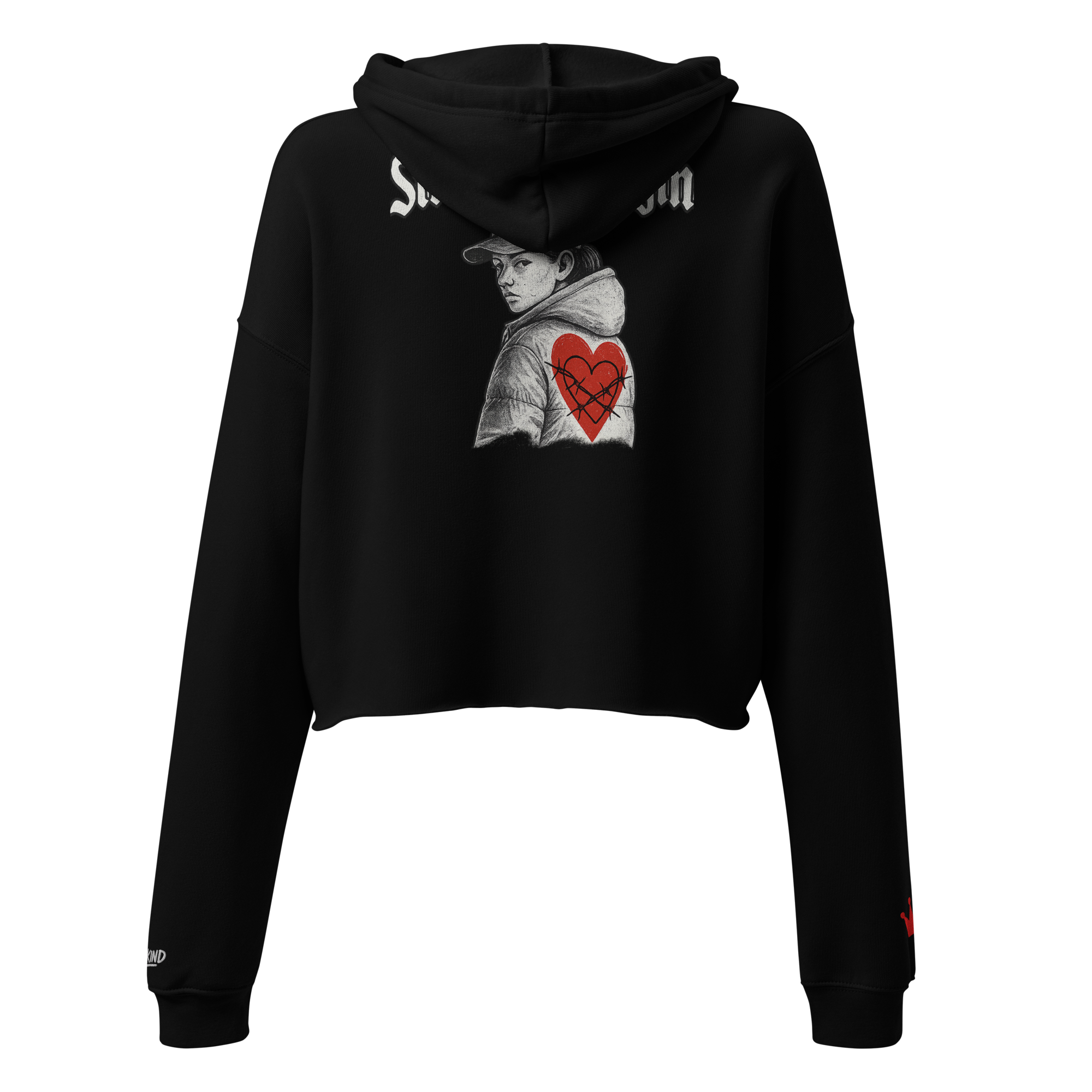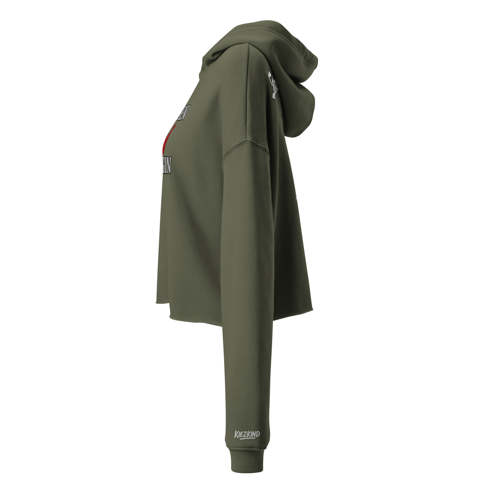 Dein Revier, deine Regeln: Moderner Cropped-Schnitt mit raw hem, dropped shoulders und farblich passenden Kordeln. Vorn und am Ärmel dezenter Stick, auf dem Rücken ein markanter „Straßenkönigin“ Print.