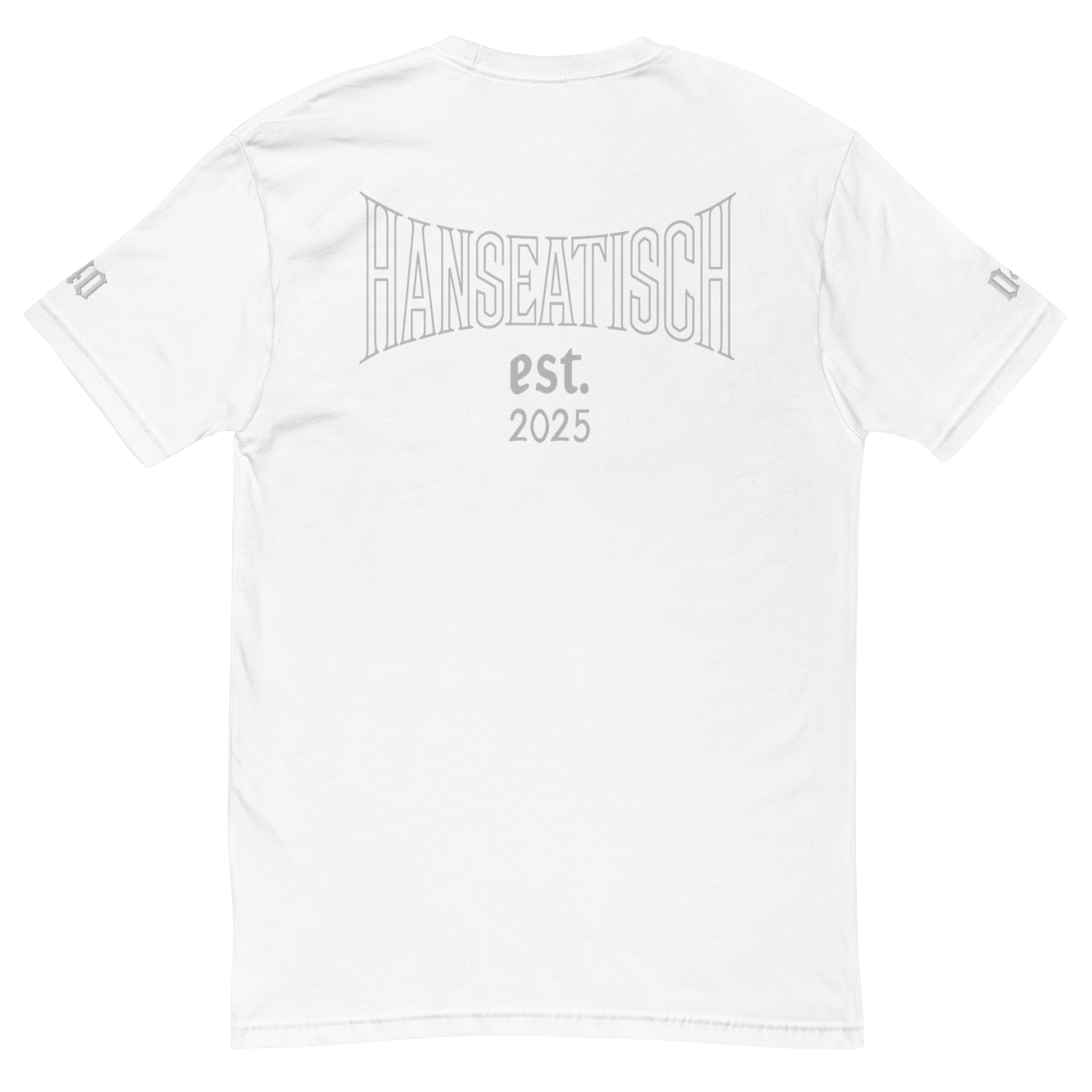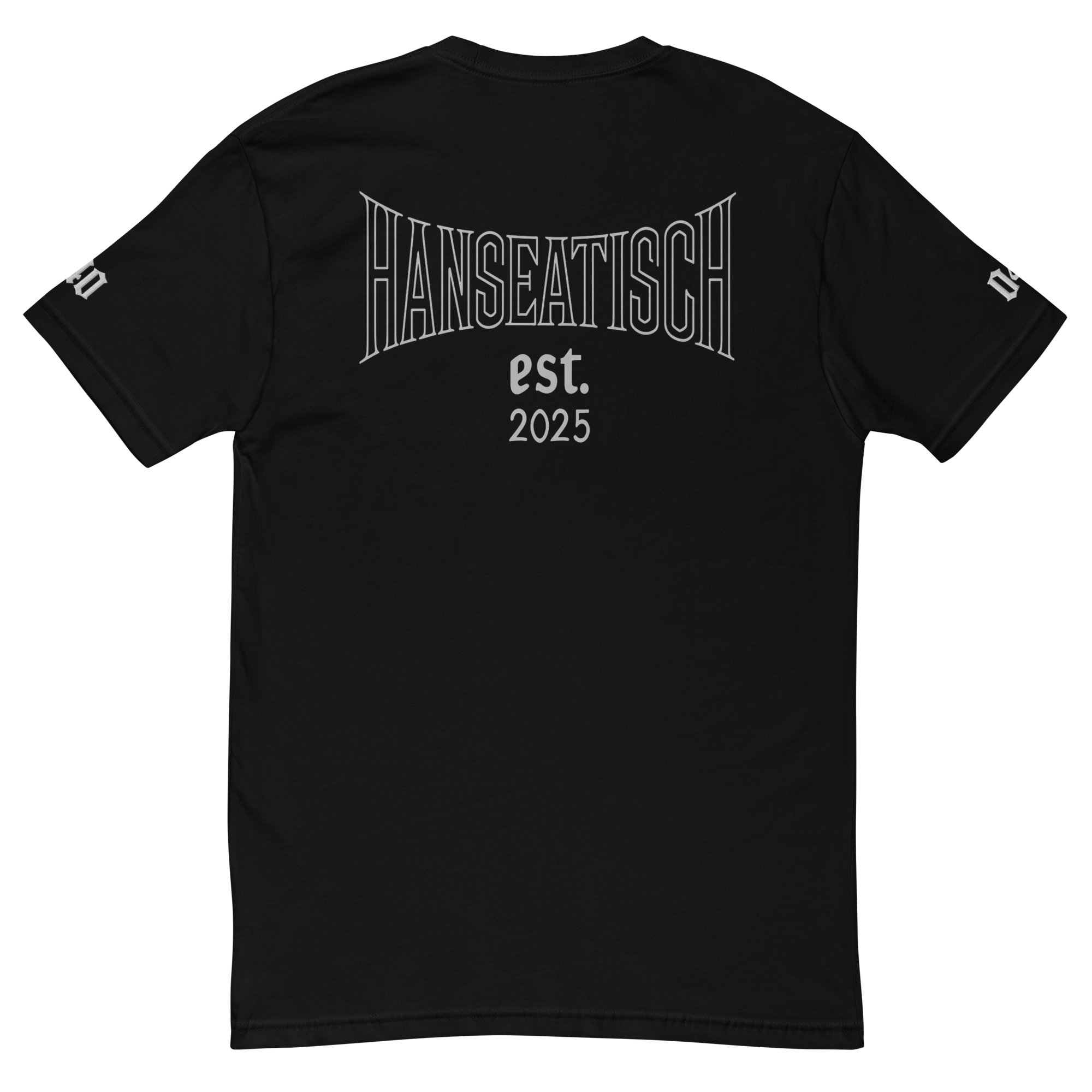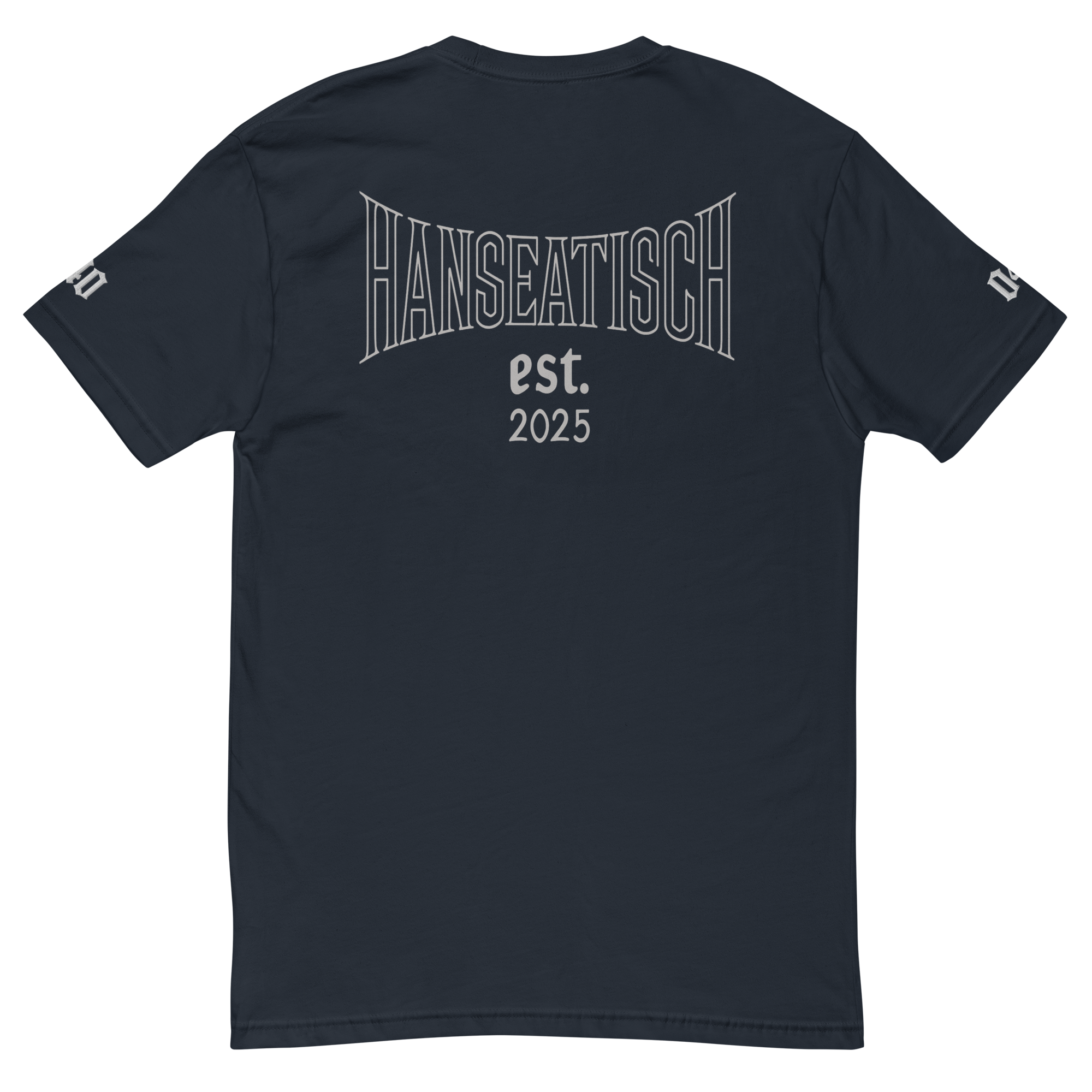 Schlanke Silhouette, klare Herkunft: vorne dezentes „hanseatisch.“, ein feines Ärmel-Detail und ein markanter Rückenprint „Hanseatisch est. 2025“.