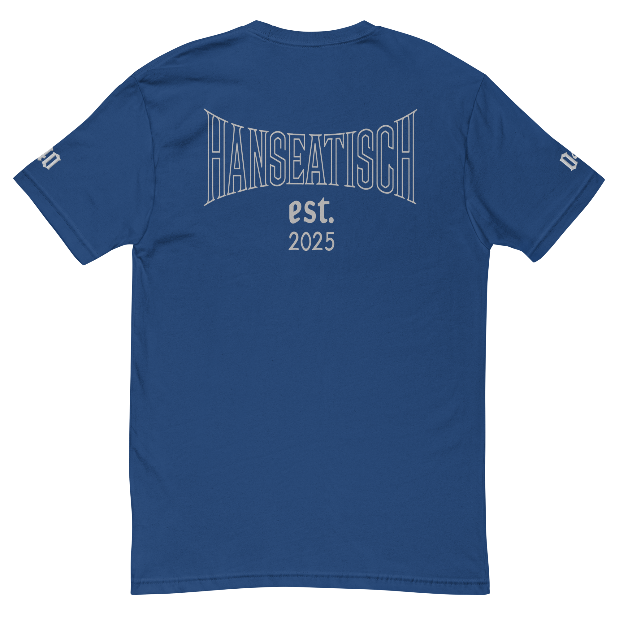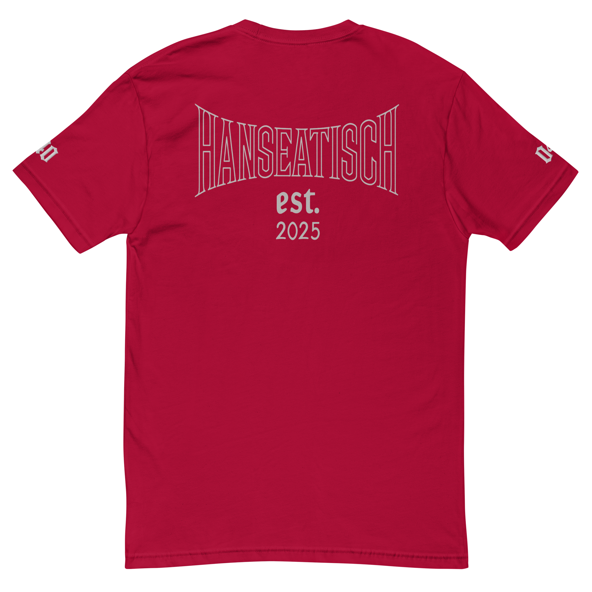 - Design: Front „hanseatisch.“, Ärmel-Detail, Rückenprint „Hanseatisch est. 2025“