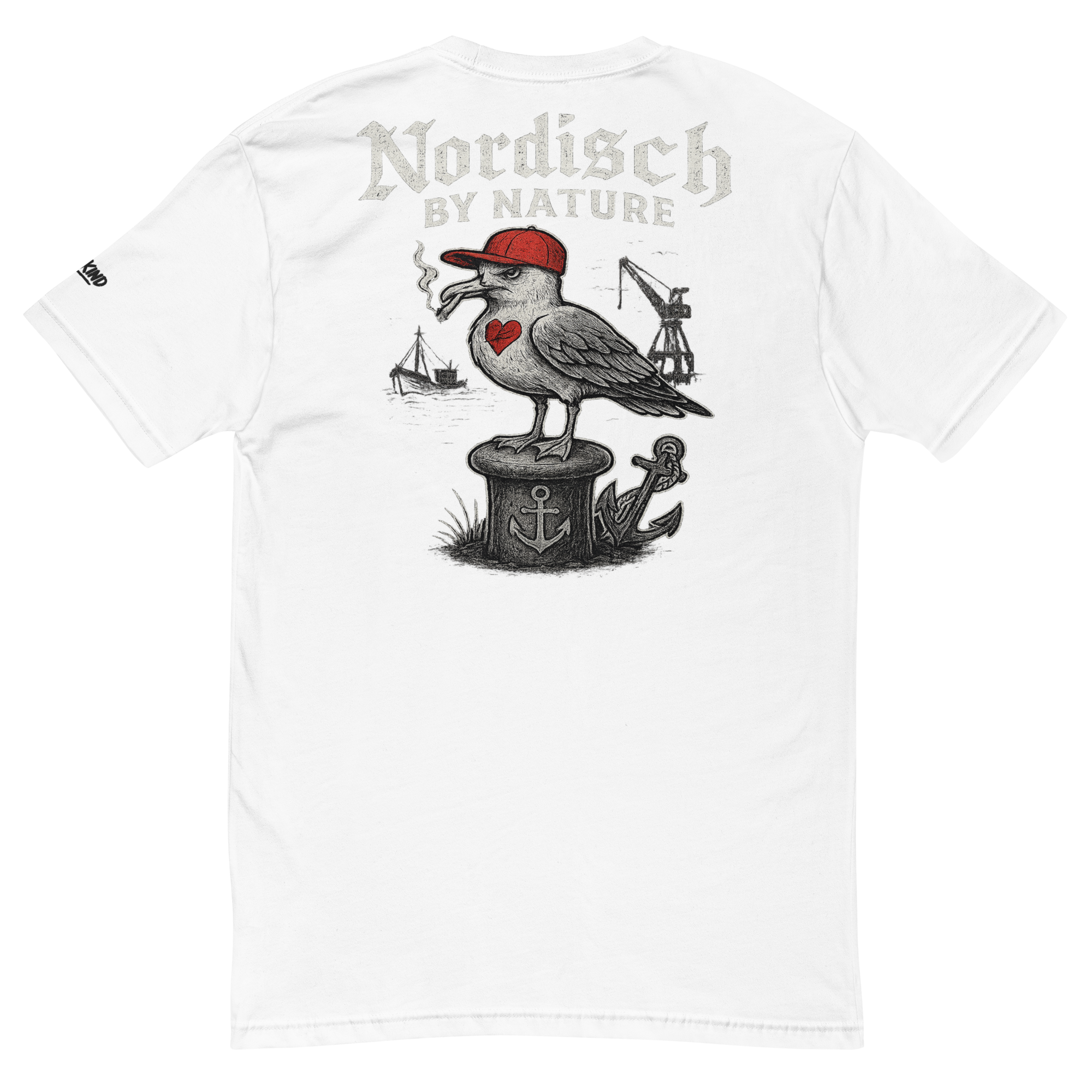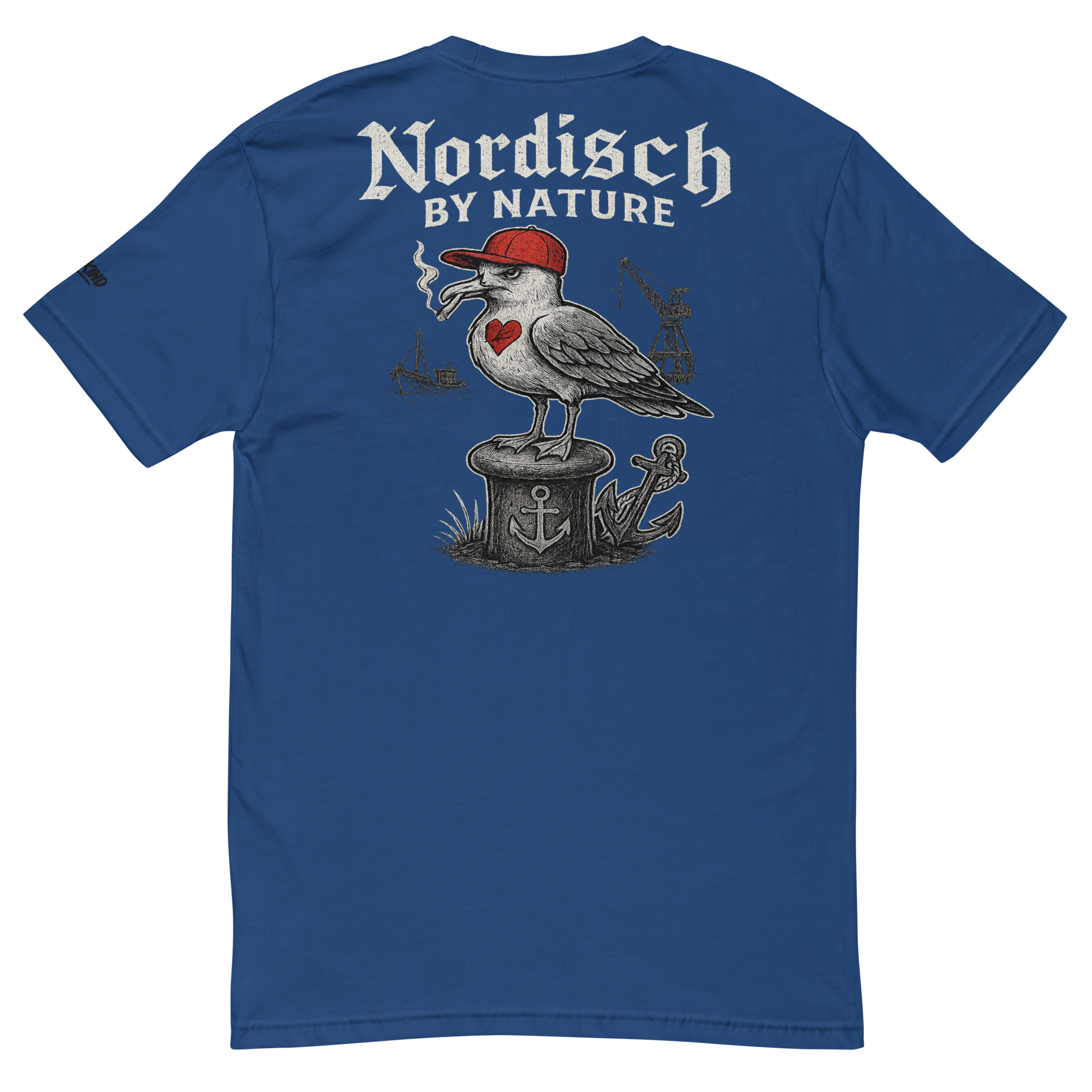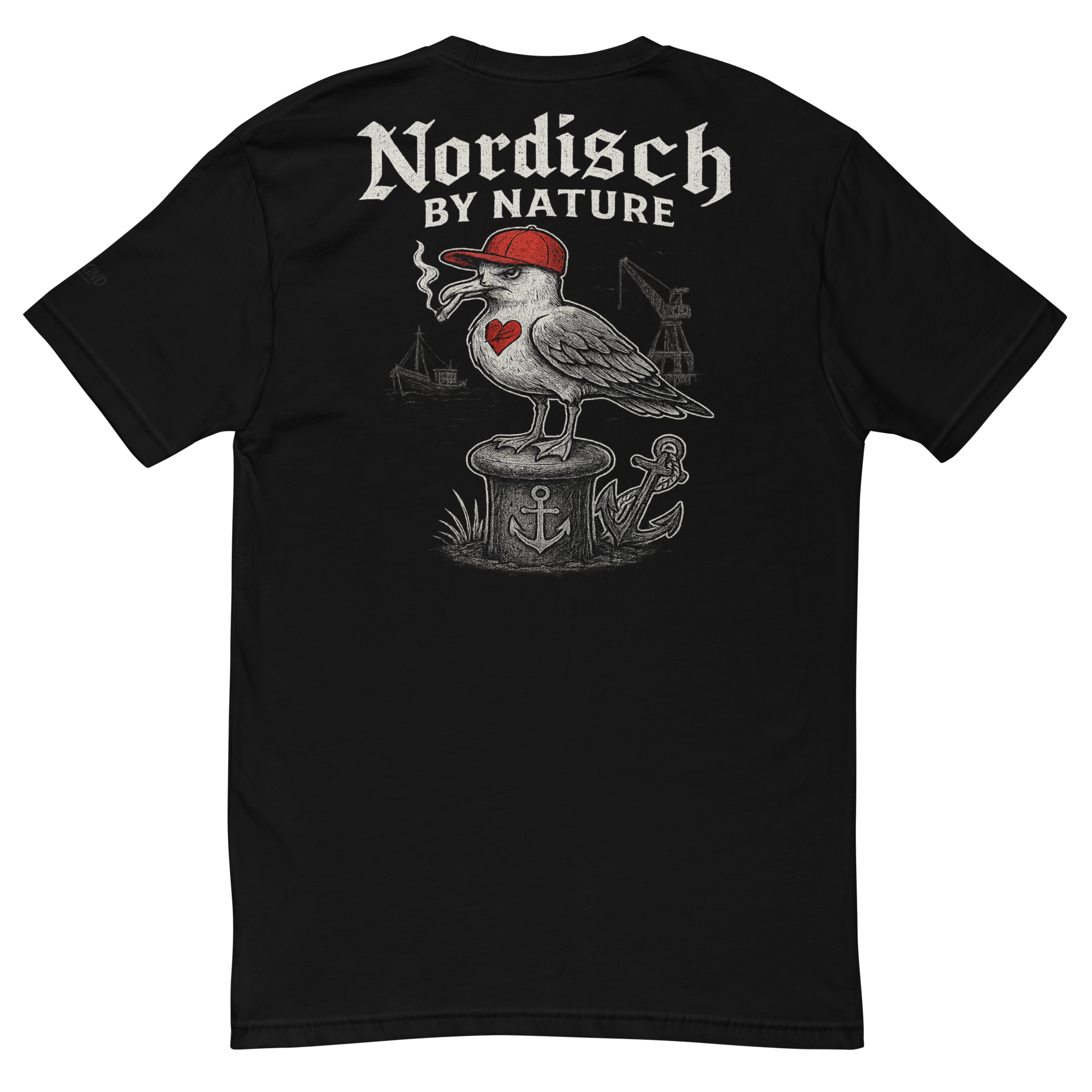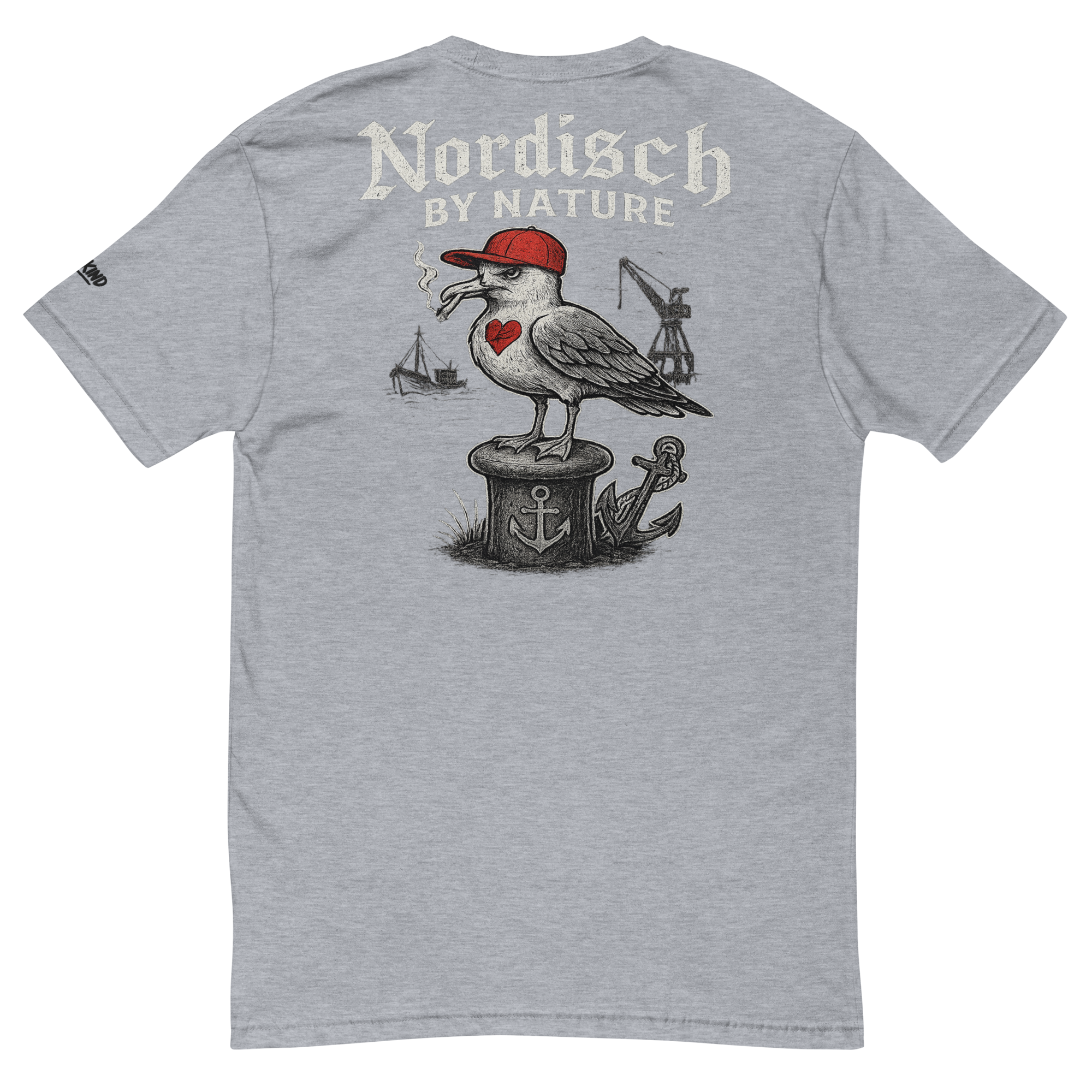 „Nordisch by Nature“ ist nicht nur ein Shirt – es ist ein Bekenntnis. Dezent im Detail, stark im Rücken und klar in der Haltung: echt nordisch.