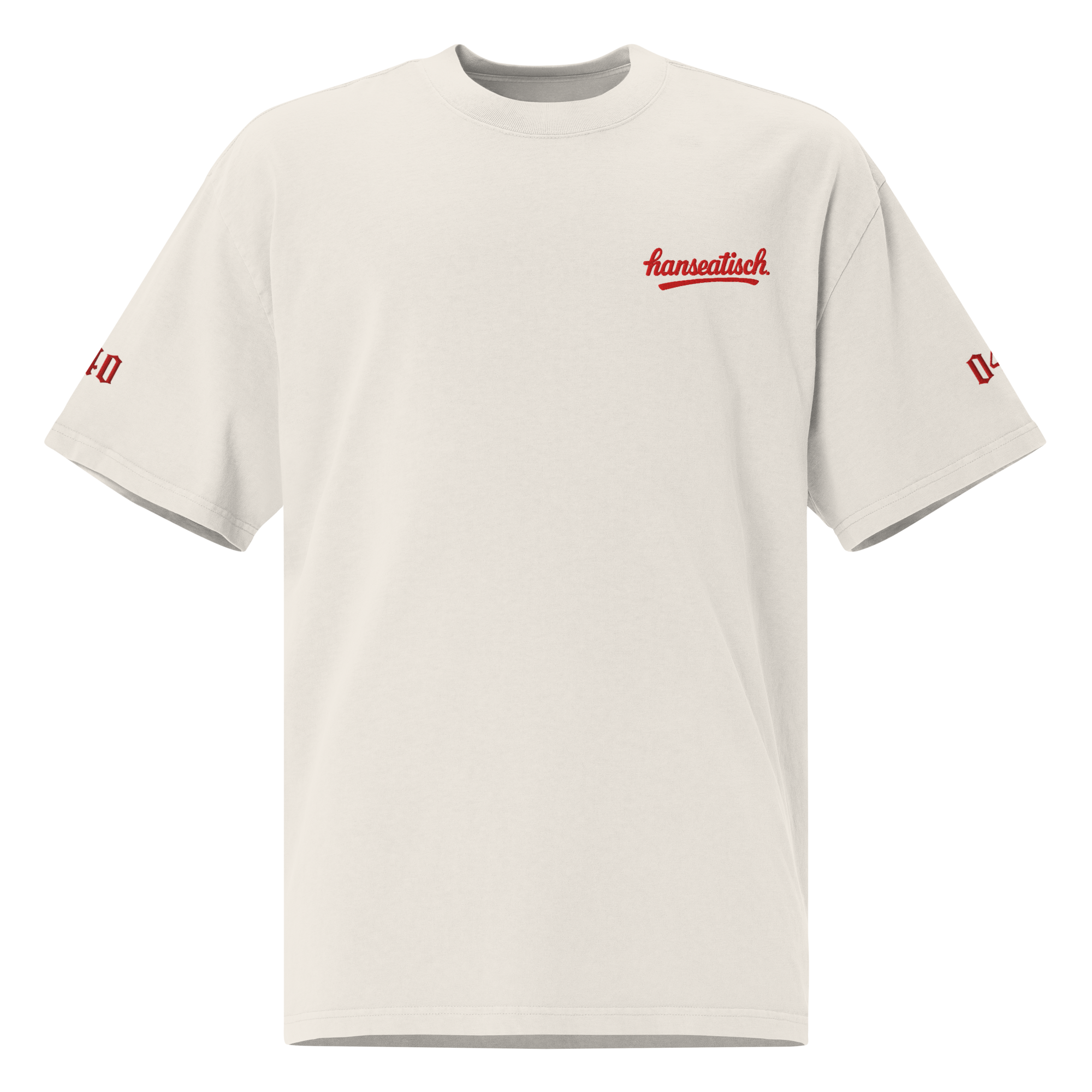 Verwaschener Vintage-Look, klare Linie: vorne dezenter „hanseatisch.“ Stick/Print und ein feines Ärmel-Detail. Rückseite clean – Understatement pur.