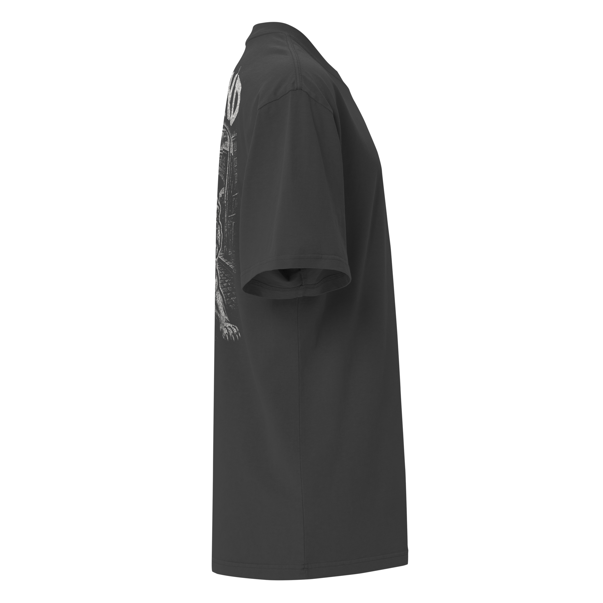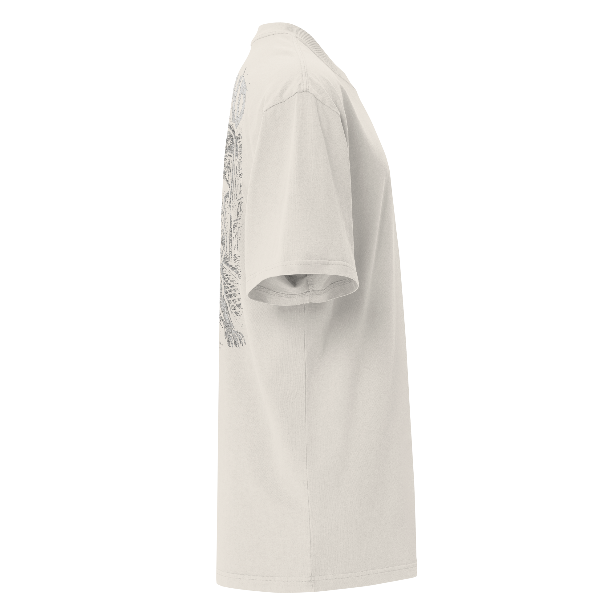 Modern trifft Vintage: Das Oversized Tee kommt im verwaschenen garment-dyed Look mit breiter Halseinfassung und lässiger, weiter Passform. Dezenter Brust-Stick/Print und ein feines Ärmel-Detail treffen auf einen markanten Rückenprint „Bulldog White“.