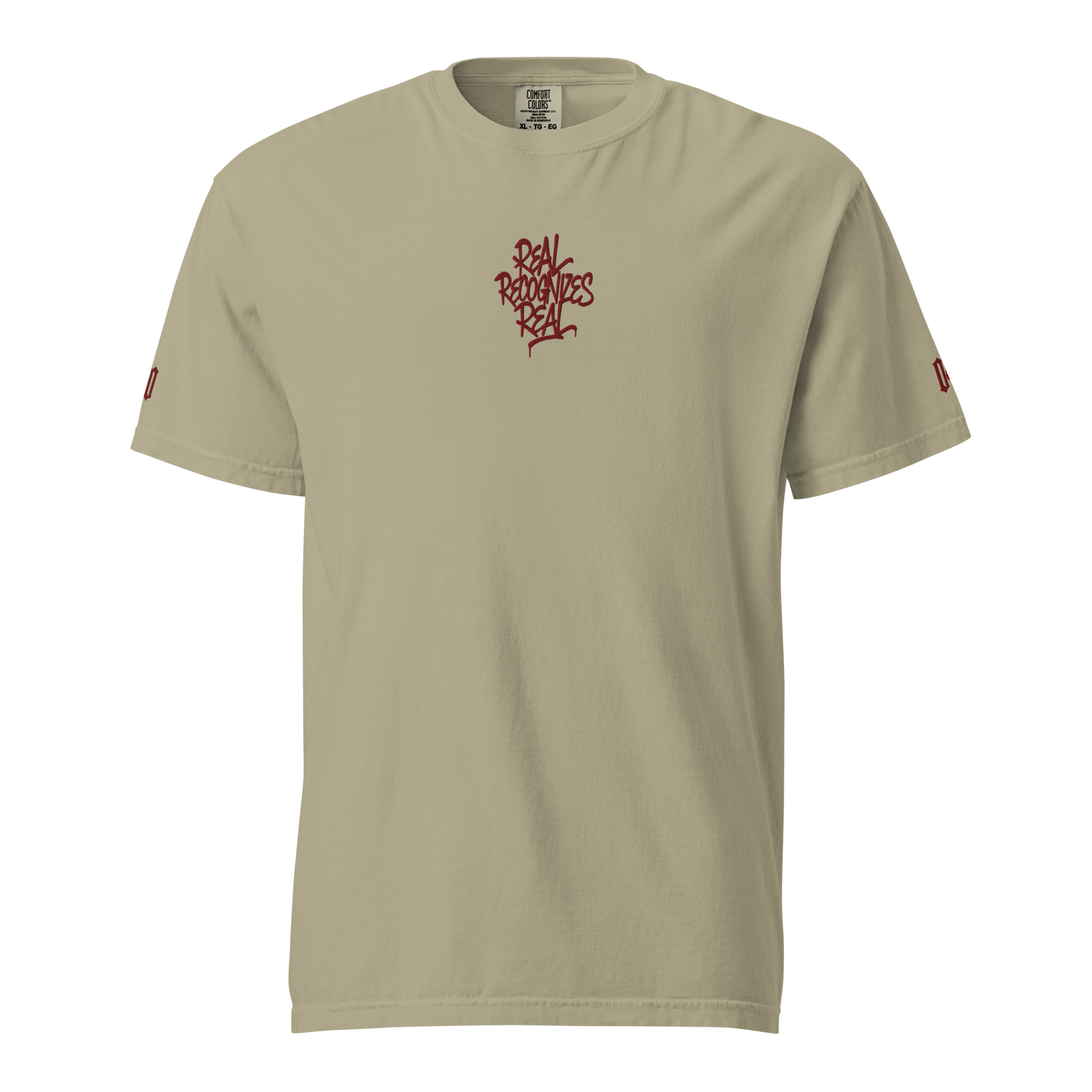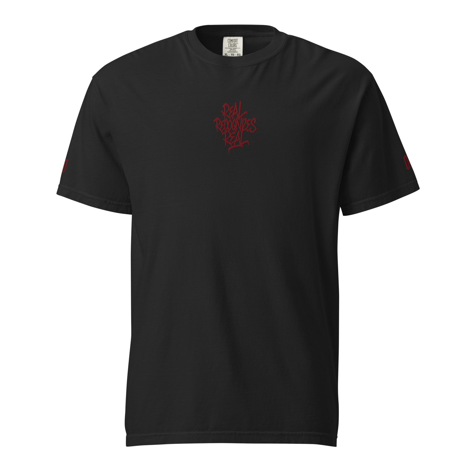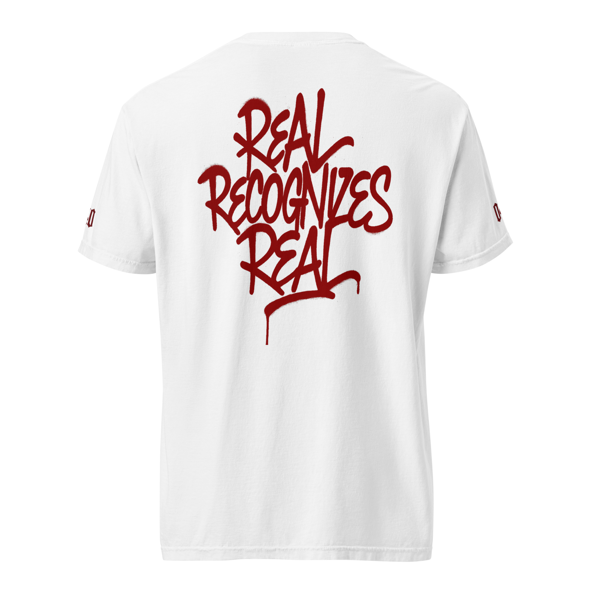 - Design: Front „Real Recognizes Real“, Ärmel-Detail, großflächiger Rückenprint