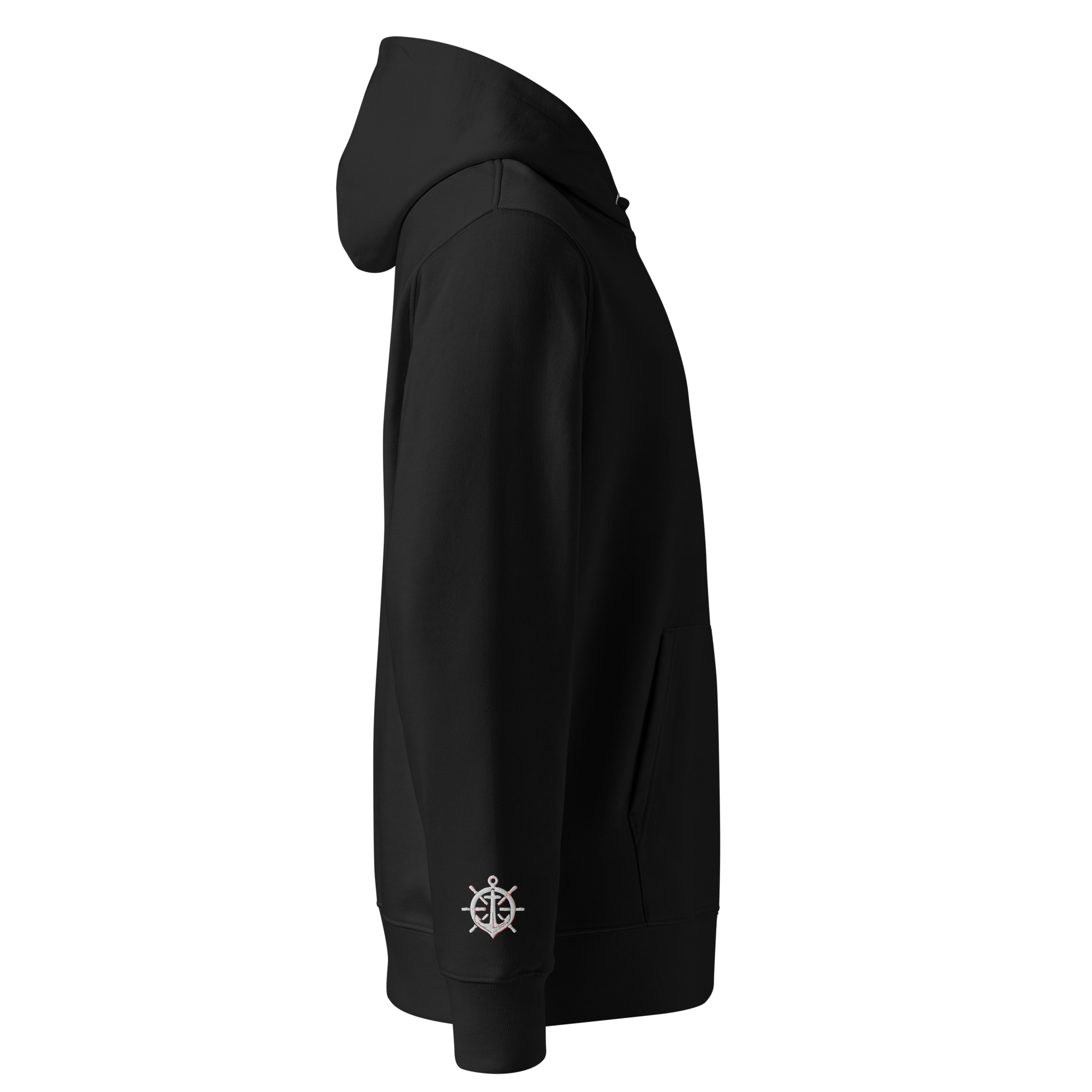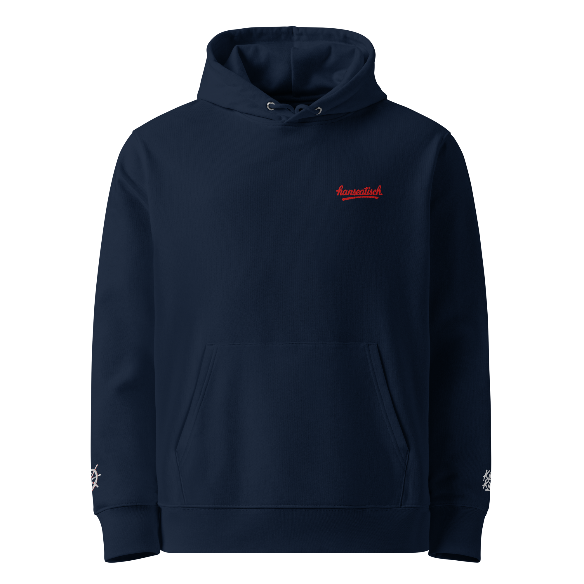 Klar, reduziert, unverwechselbar: Der „hanseatisch.“ Hoodie steht für nordische Zurückhaltung und ehrlichen Style. Vorn setzt der dezente Stick „hanseatisch.“ ein stilles Statement, am Ärmel erinnert ein kleines Steuerrad mit Anker an die Seele der Stadt. Die Rückseite bleibt bewusst clean – Understatement mit Haltung.