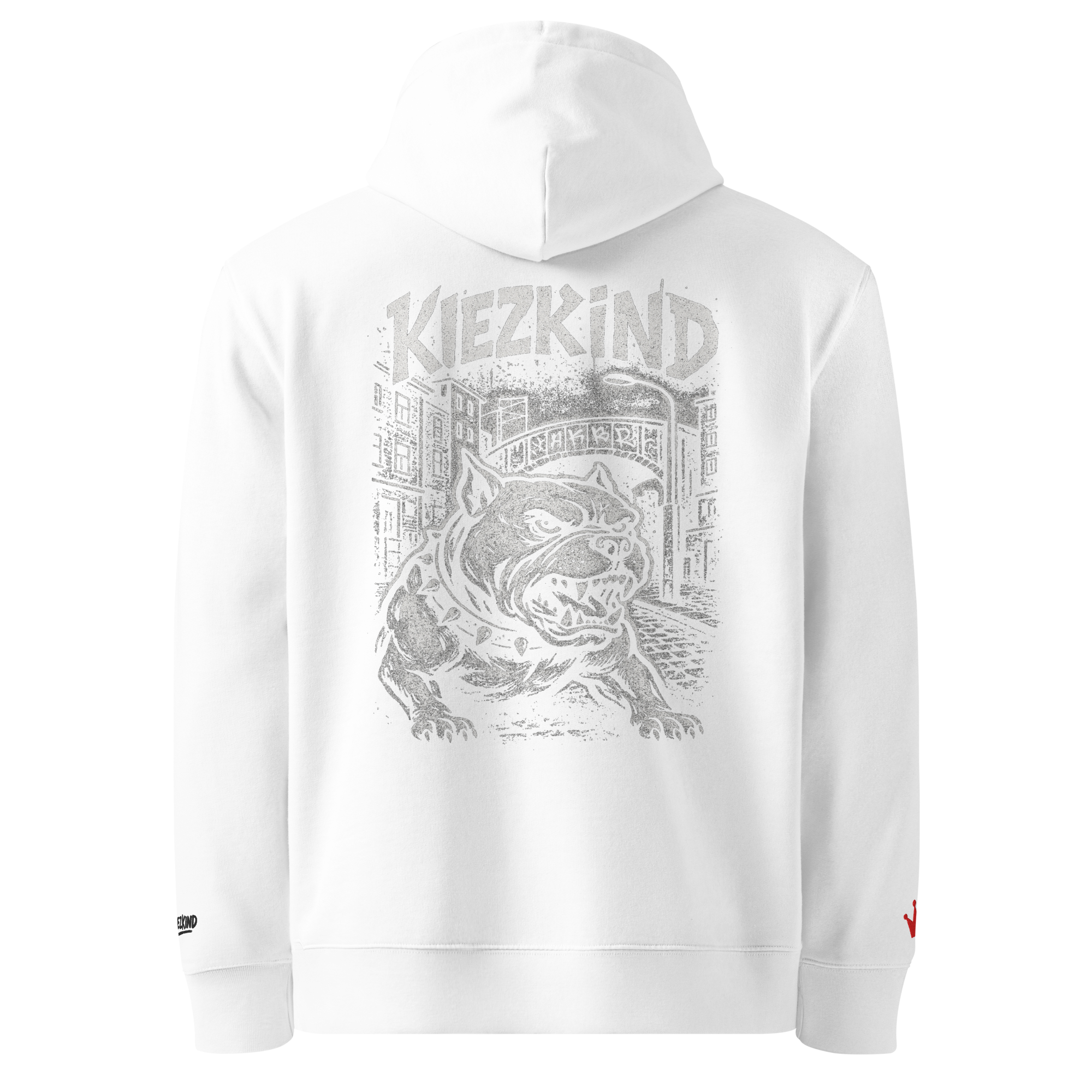 Der „Bulldog White“ Hoodie steht für Stärke, Loyalität und klaren Kiez-Charakter. Dezenter Stick auf Brust und Ärmel trifft auf einen kraftvollen Rückenprint – für alle, die Haltung tragen.