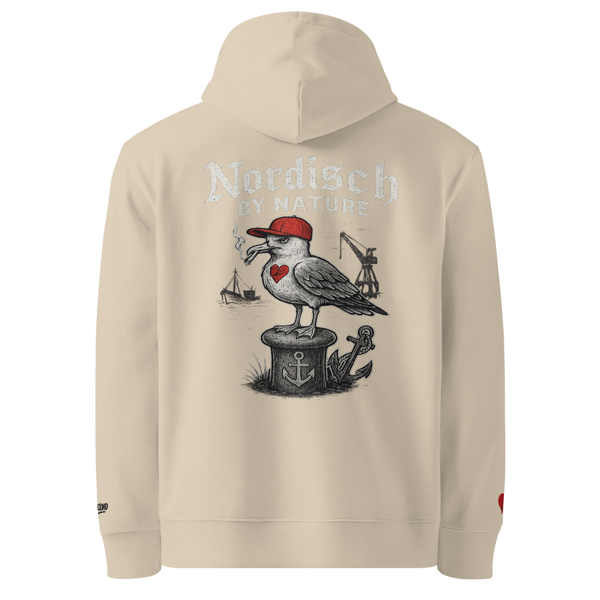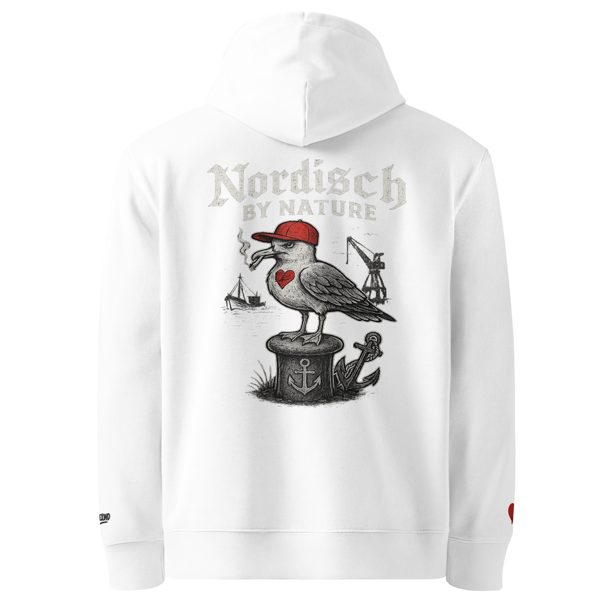 Der „Nordisch by Nature“ Hoodie vereint klare Streetwear-Linien mit hanseatischer Haltung. Dezente Stickdetails auf Brust und Ärmel treffen auf einen markanten Rückenprint – für alle, die den Norden nicht nur fühlen, sondern leben.