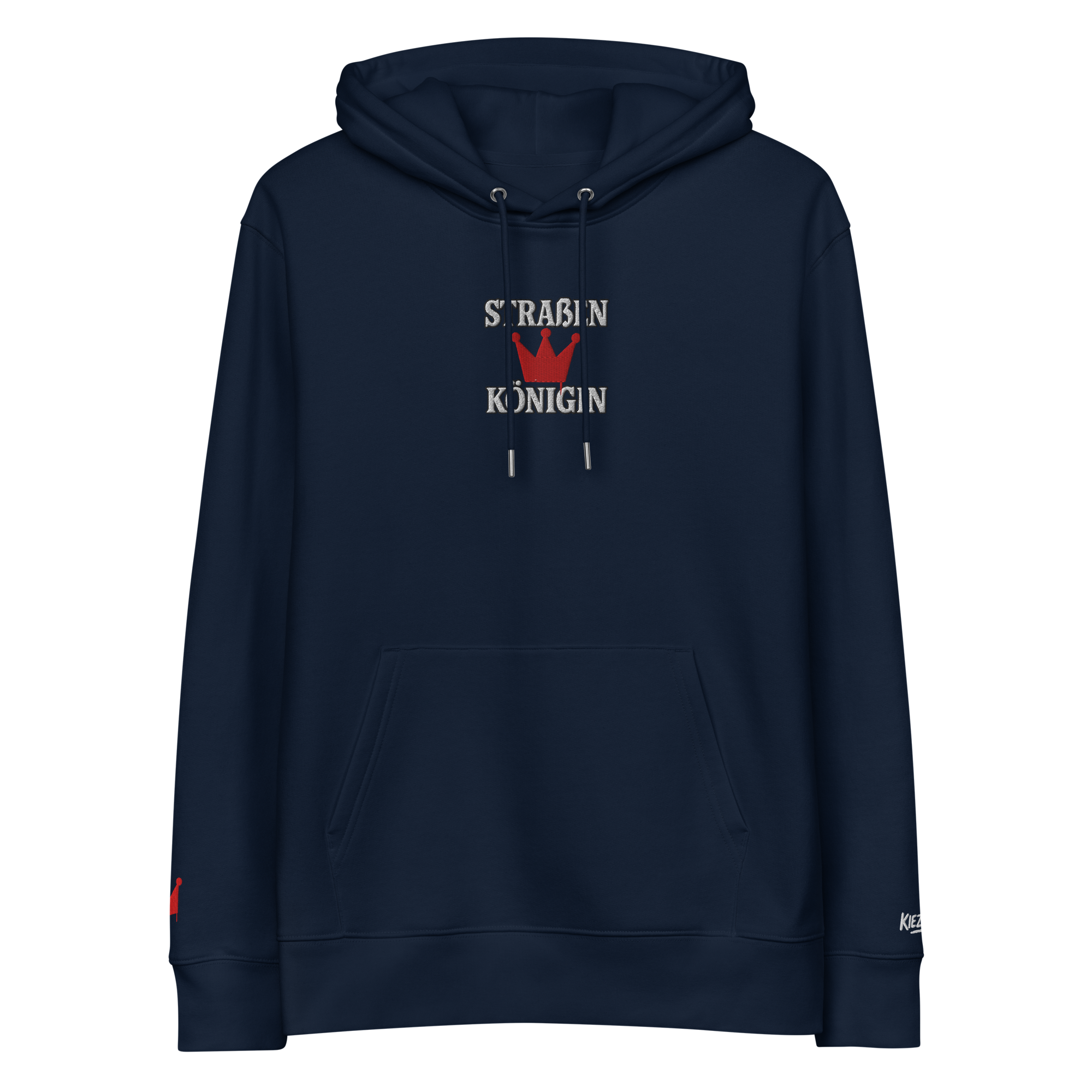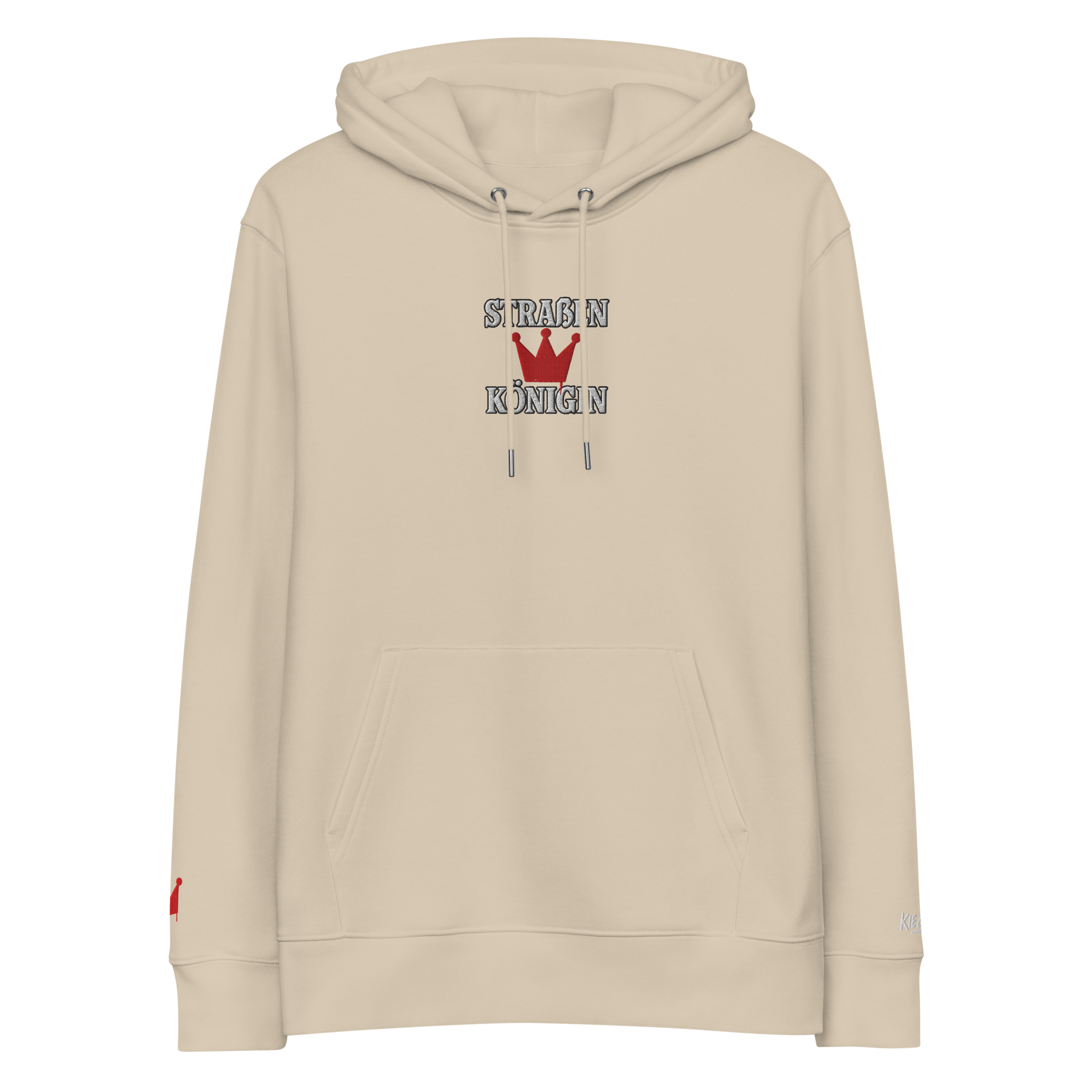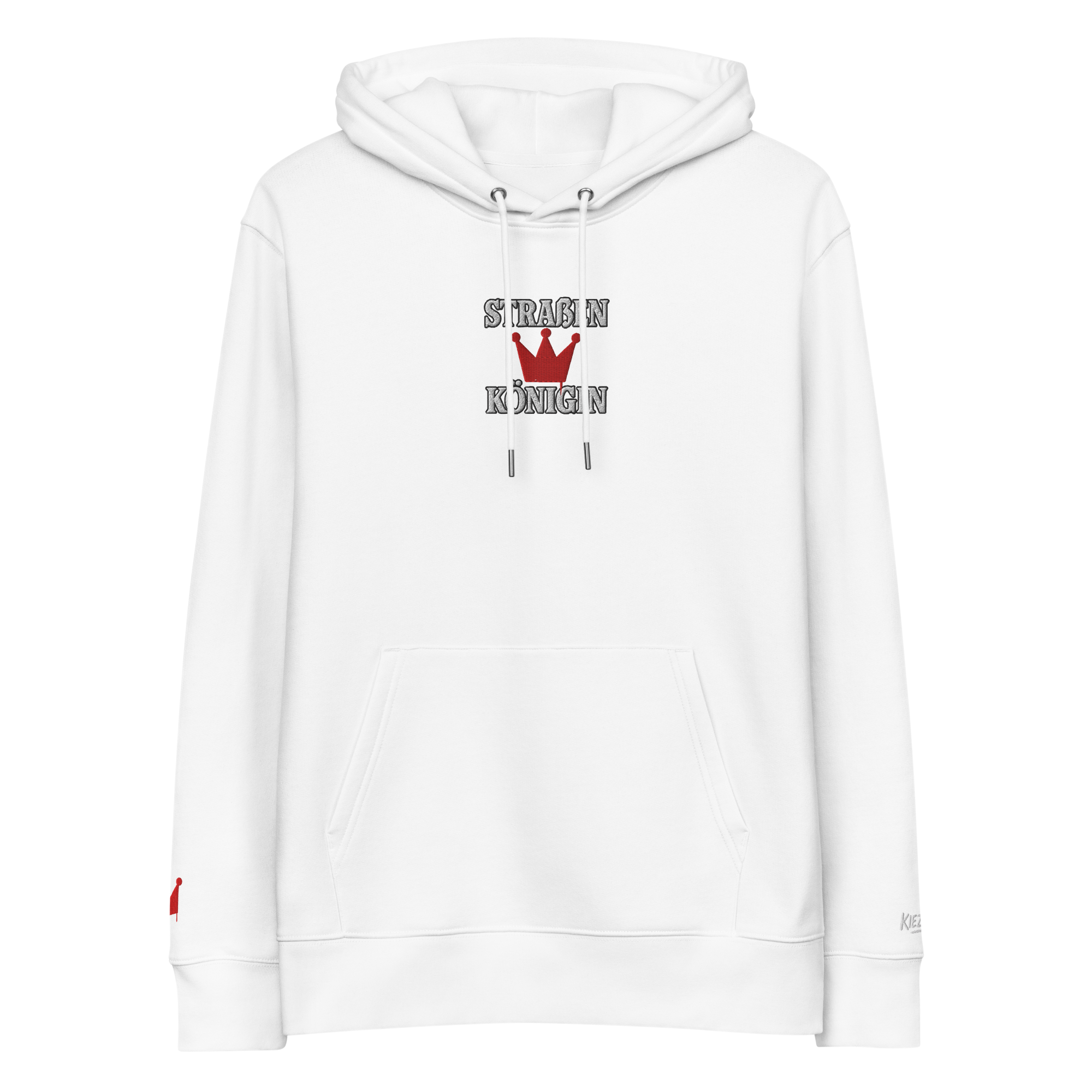 Der „Straßenkönigin“ Hoodie gehört allen, die die Nacht regieren und am Tag Haltung zeigen. Dezenter Stick auf Brust und Ärmel trifft auf einen markanten Rückenprint – für Looks mit Krone und Charakter.