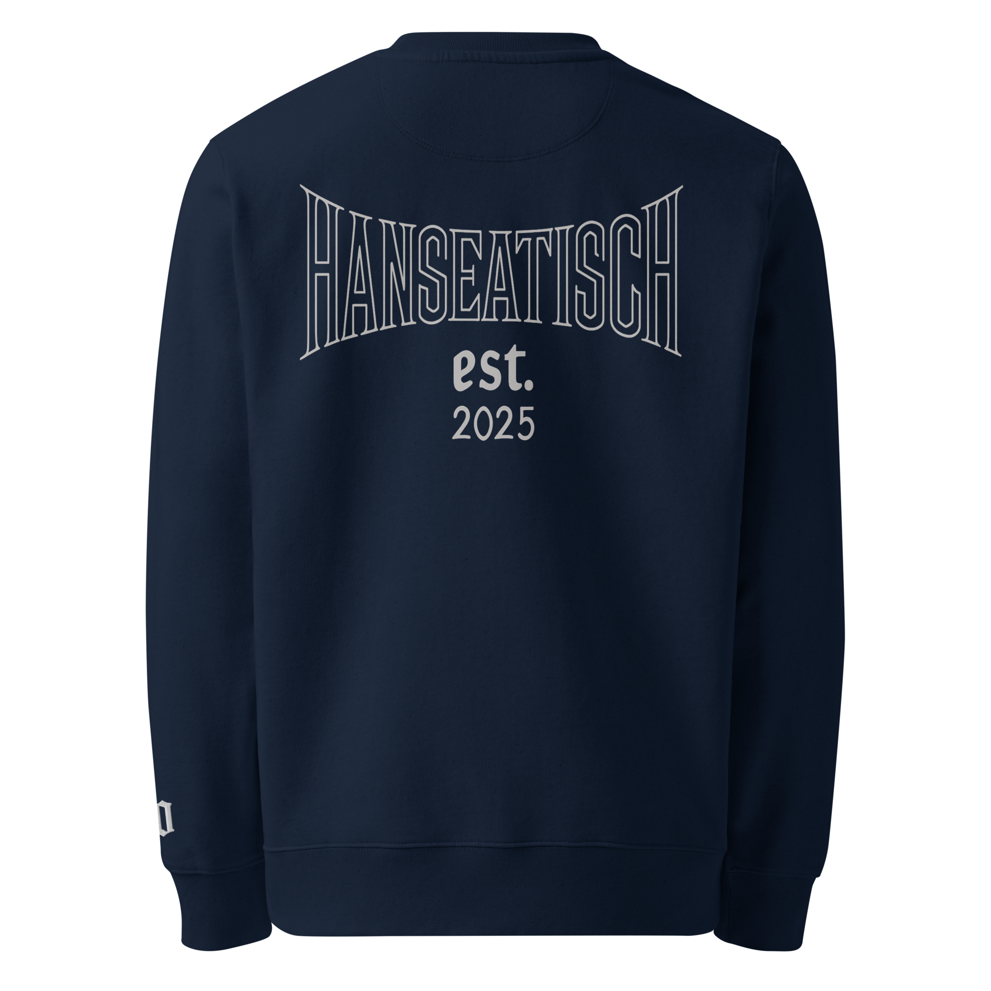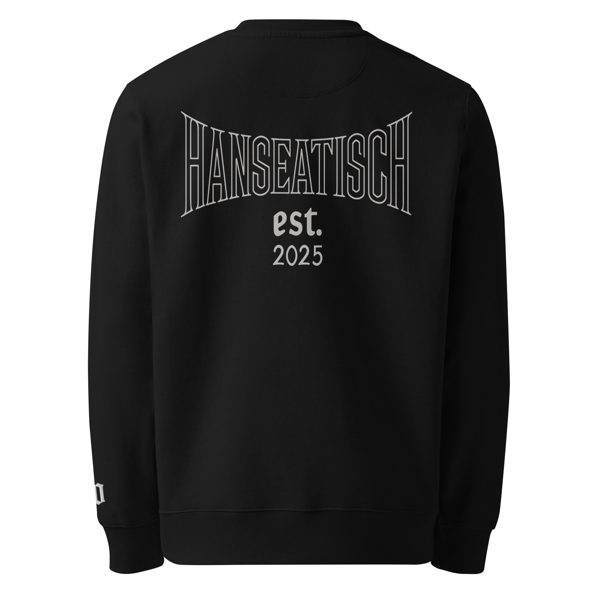 - Markantes Design – Stick auf der Brust „Hanseatisch“ (gotisch) + Rückenprint „Hanseatisch est. 2025“