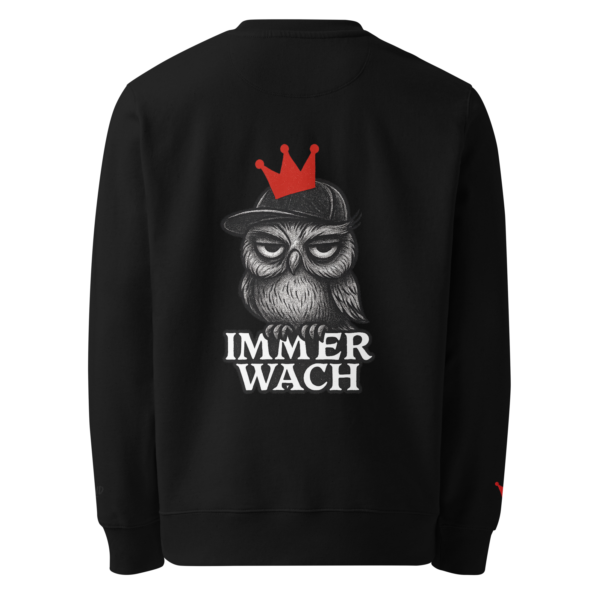 - Markantes Design – Stick vorne & am Ärmel + großflächiger Rückenprint „Immer Wach“