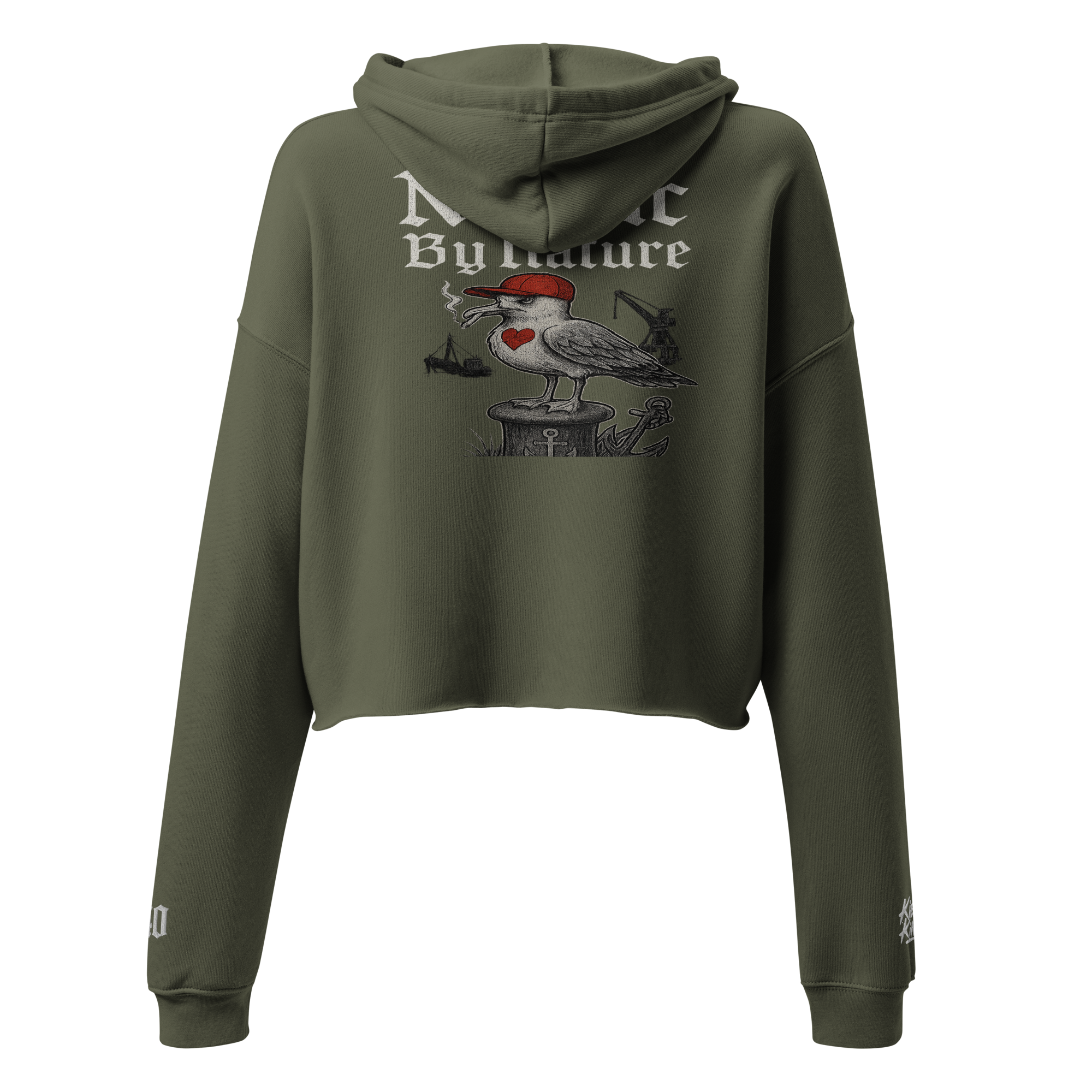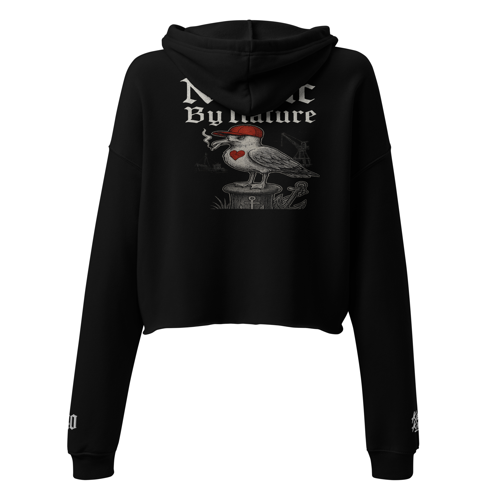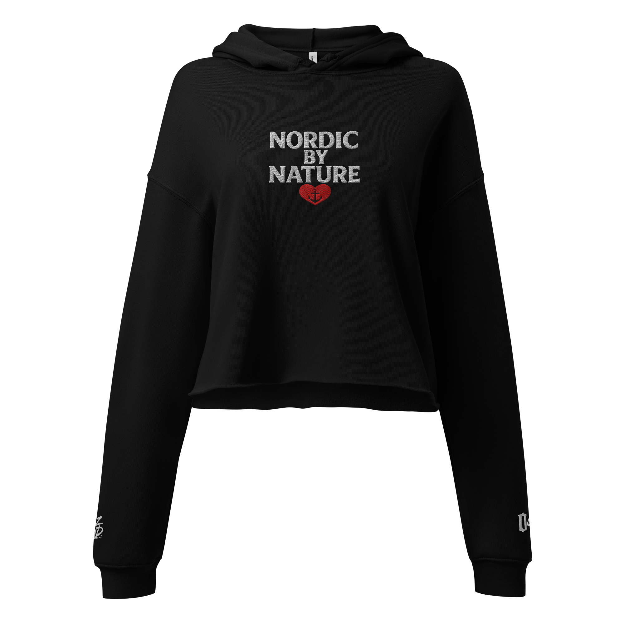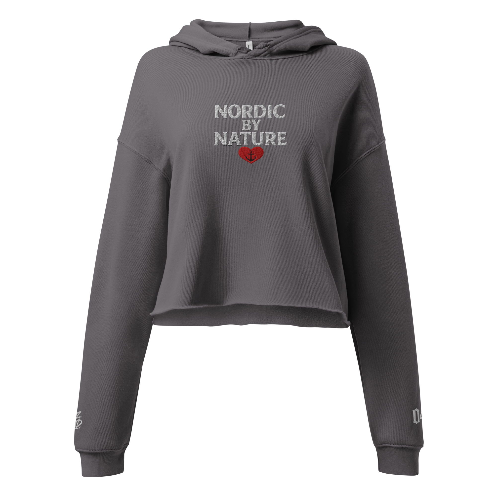 Cropped, leicht und mit offener Saumkante – dieser Hoodie setzt ein klares, nordisches Statement. Passend gefärbte Kordelzüge und abgesetzte Schultern runden den modernen Fit ab. Front-Print „Nordic by Nature“ – minimalistisch & wirkungsvoll.