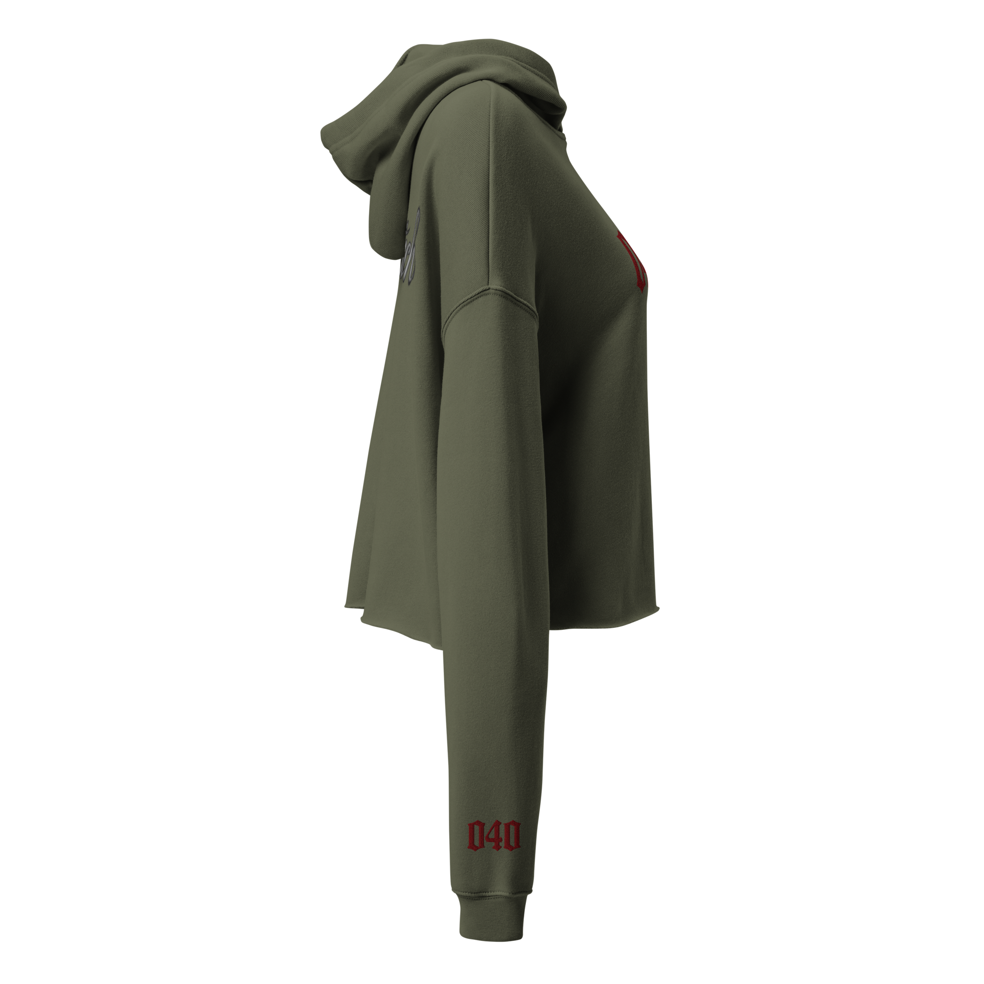 Cropped, leicht und nordisch klar: Der offene Saum sorgt für lässigen Fall, die farblich passenden Kordeln und die abgesetzten Schultern runden den modernen Fit ab. Front-Print „040“ – leise gesagt, eindeutig gemeint.