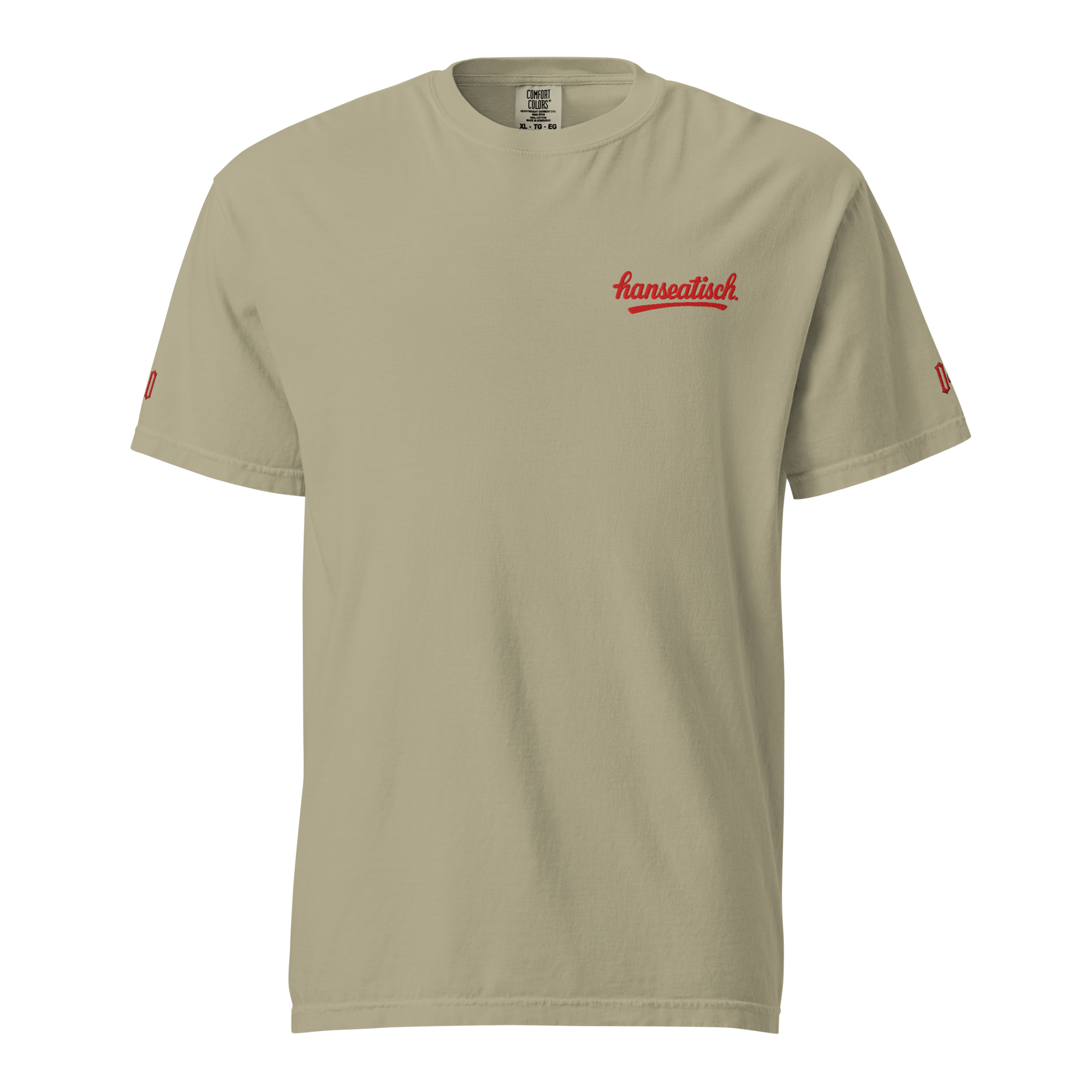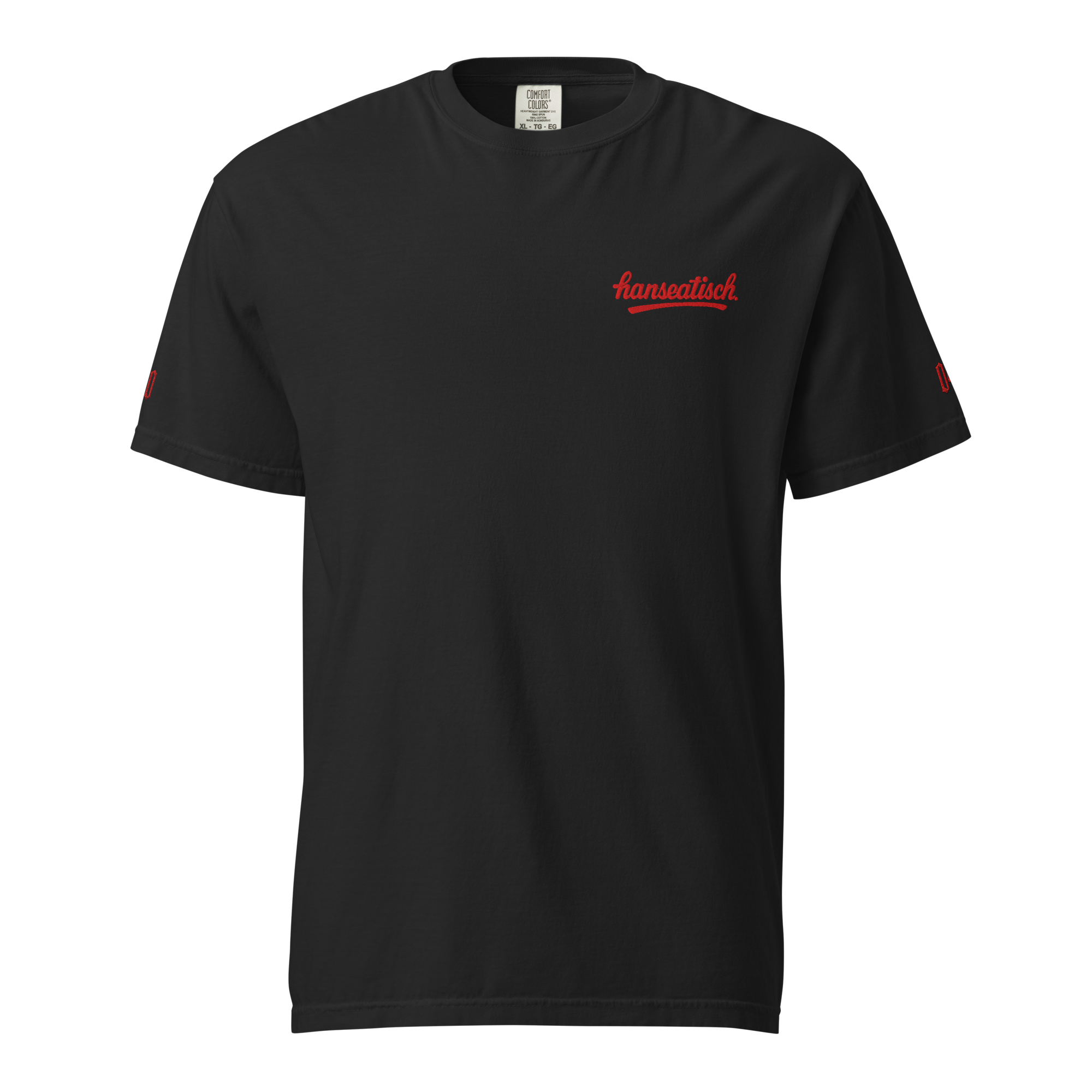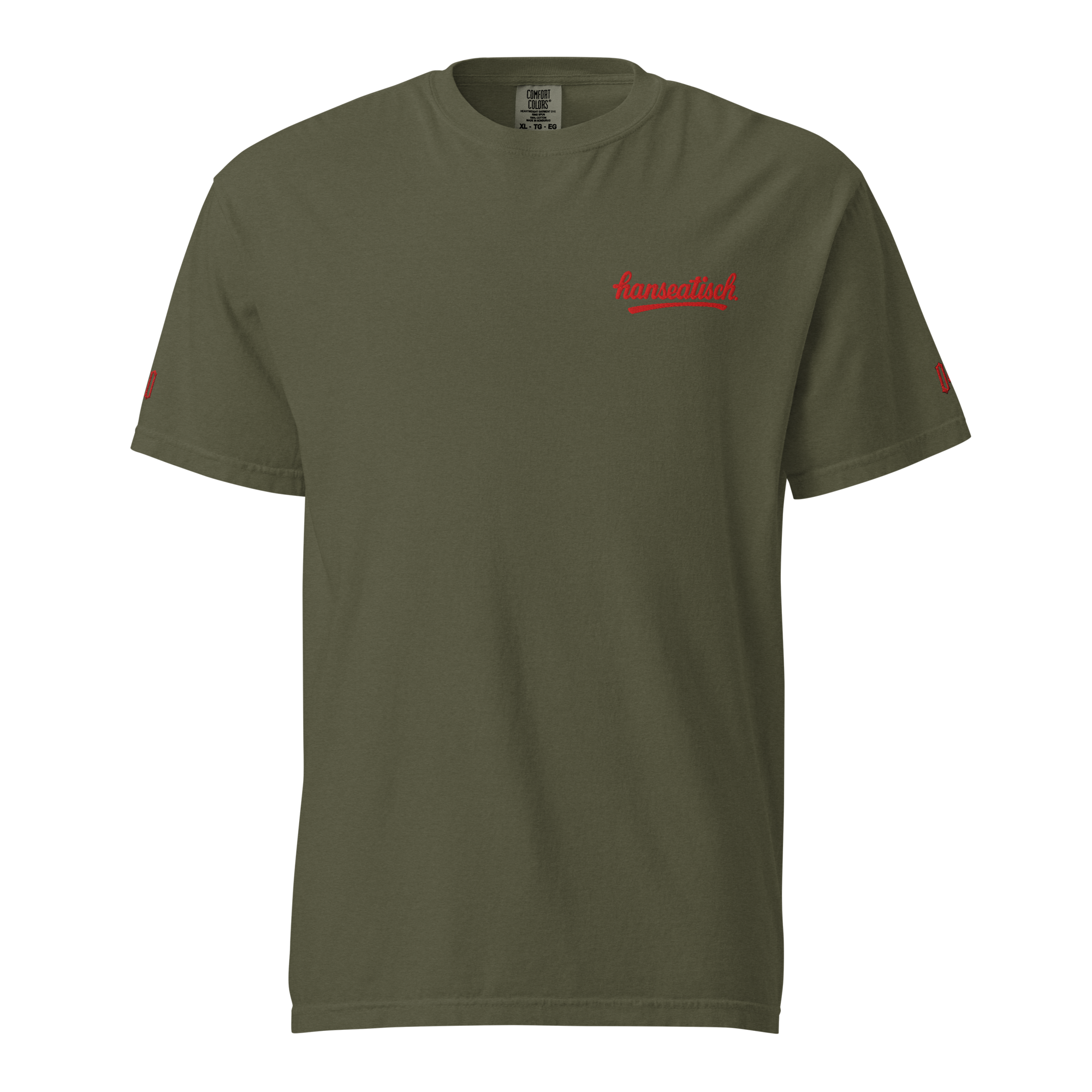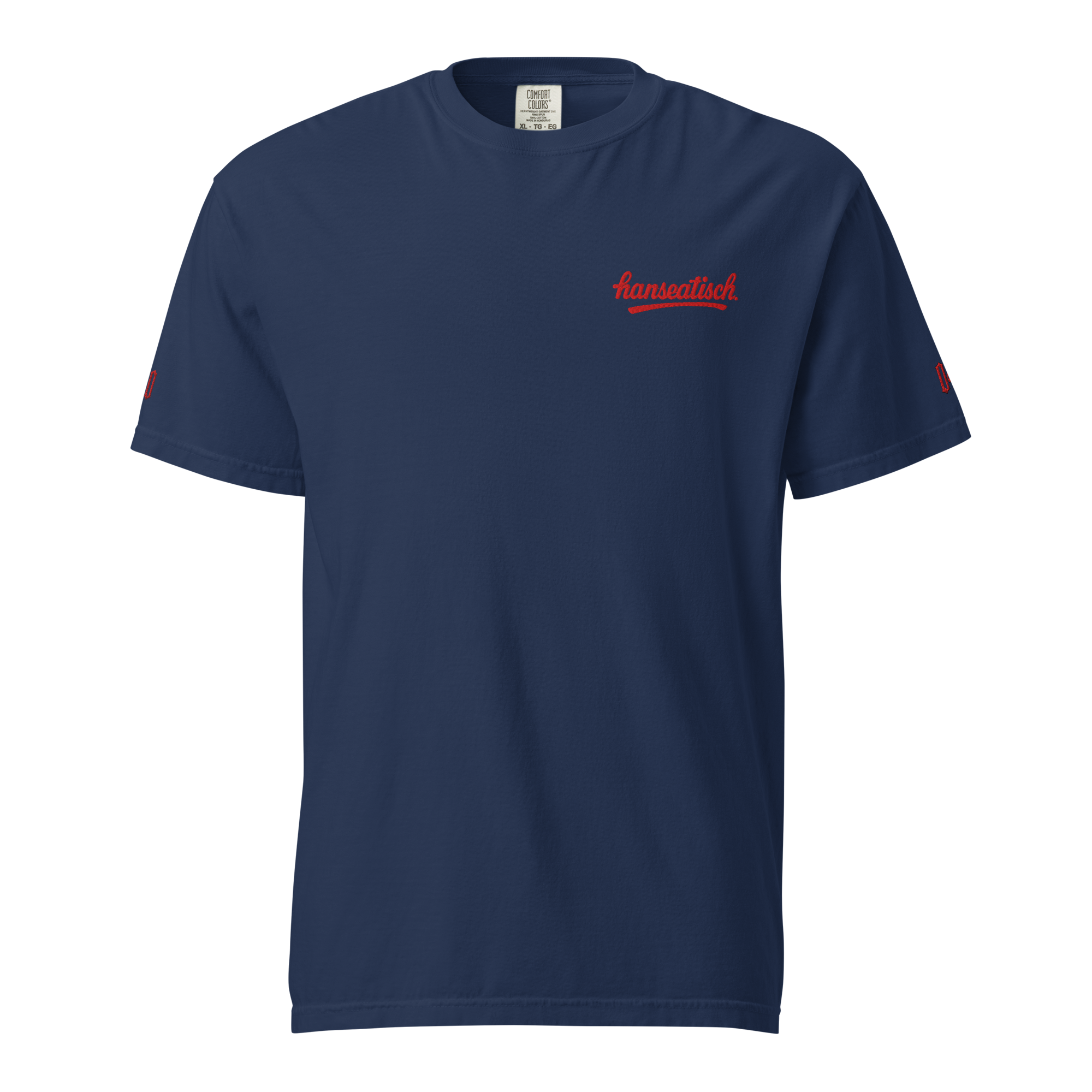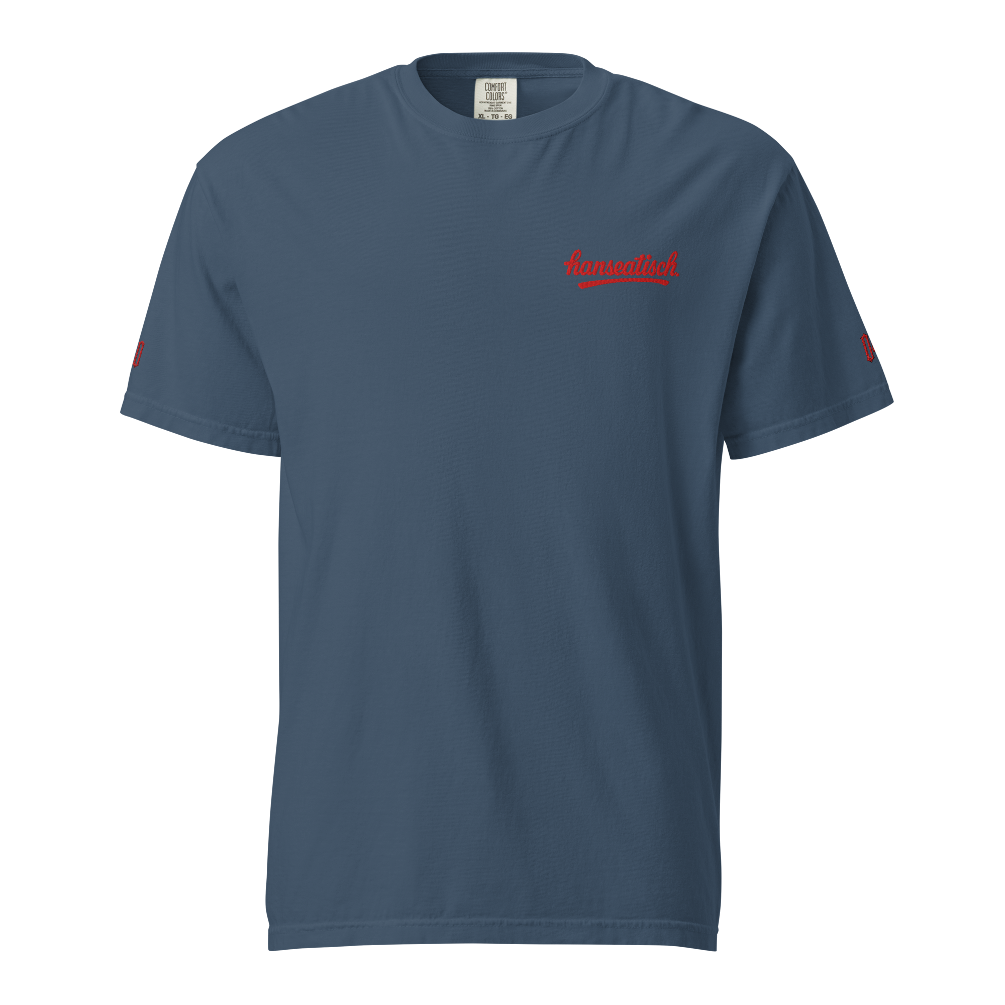 Klare Linie statt lauter Töne: Dezenter Front-Print/Stick „hanseatisch.“, feines Ärmel-Detail – zeitloser Look mit nordischer Haltung.