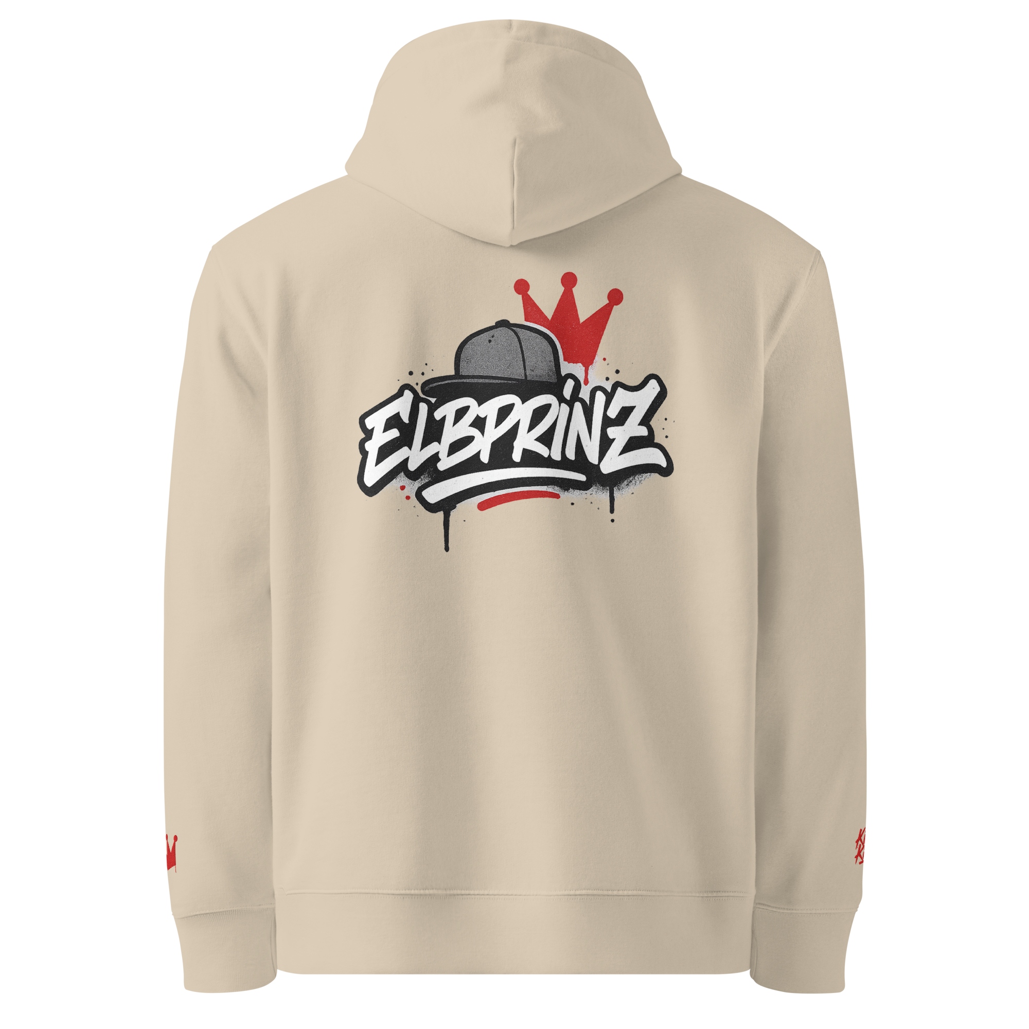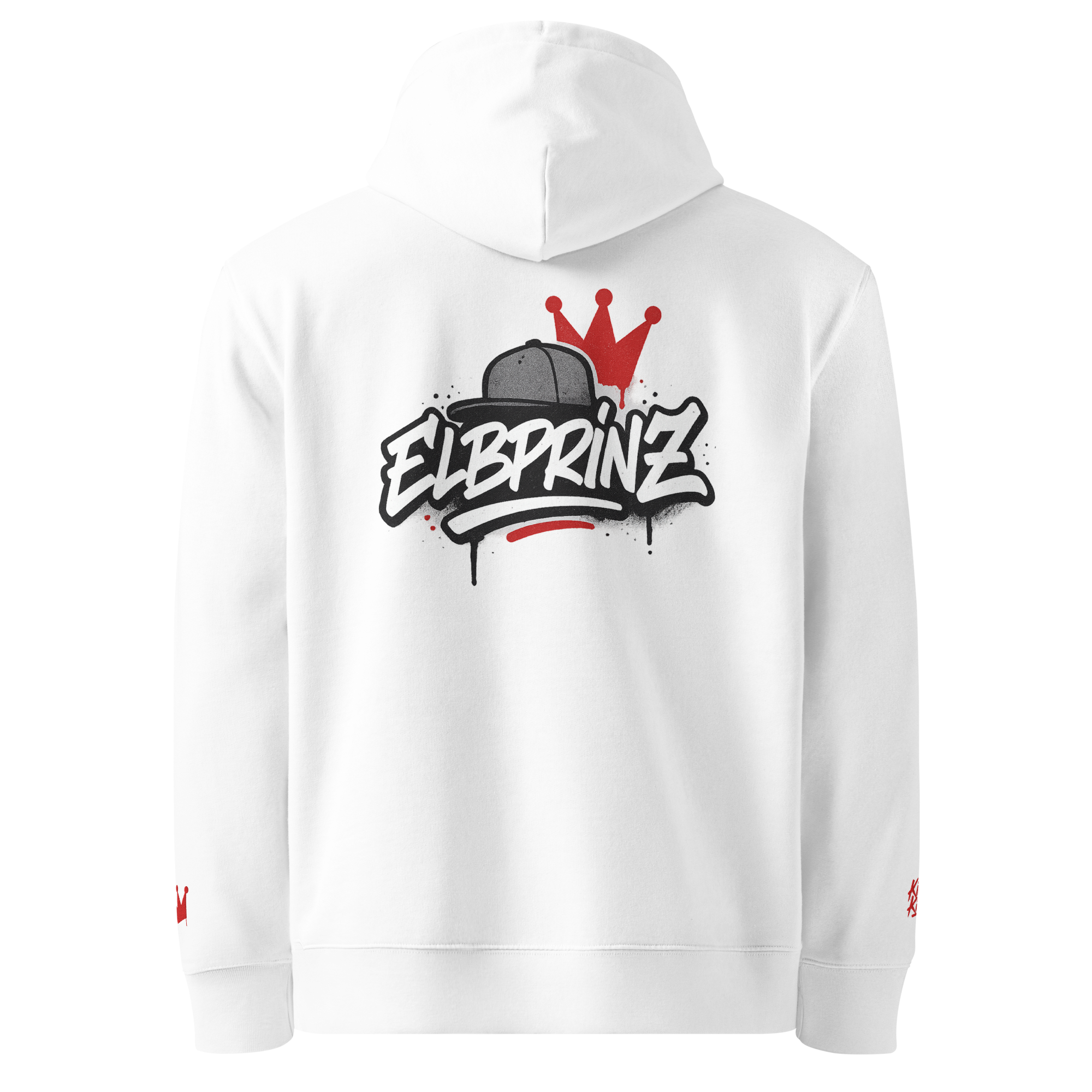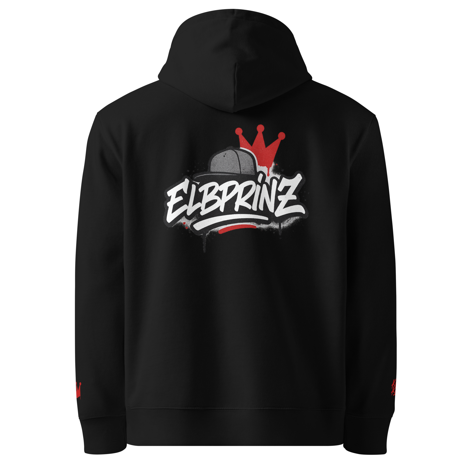- Statement-Design – dezenter Stick vorn, Ärmel-Detail & großflächiger Rückenprint „Elbprinz“