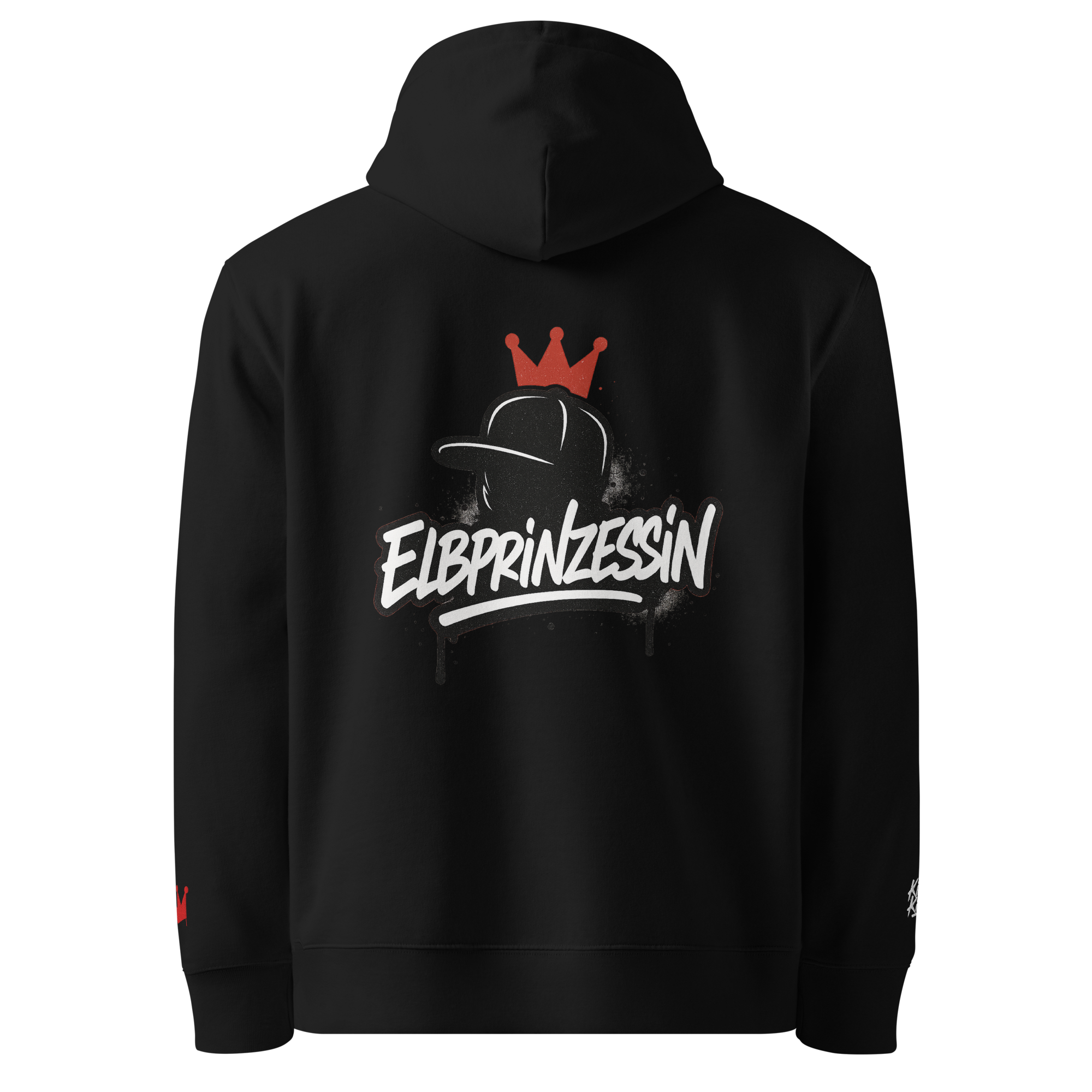 - Design: dezenter Frontstick, Ärmel-Detail & großflächiger Rückenprint „Elbprinzessin“
