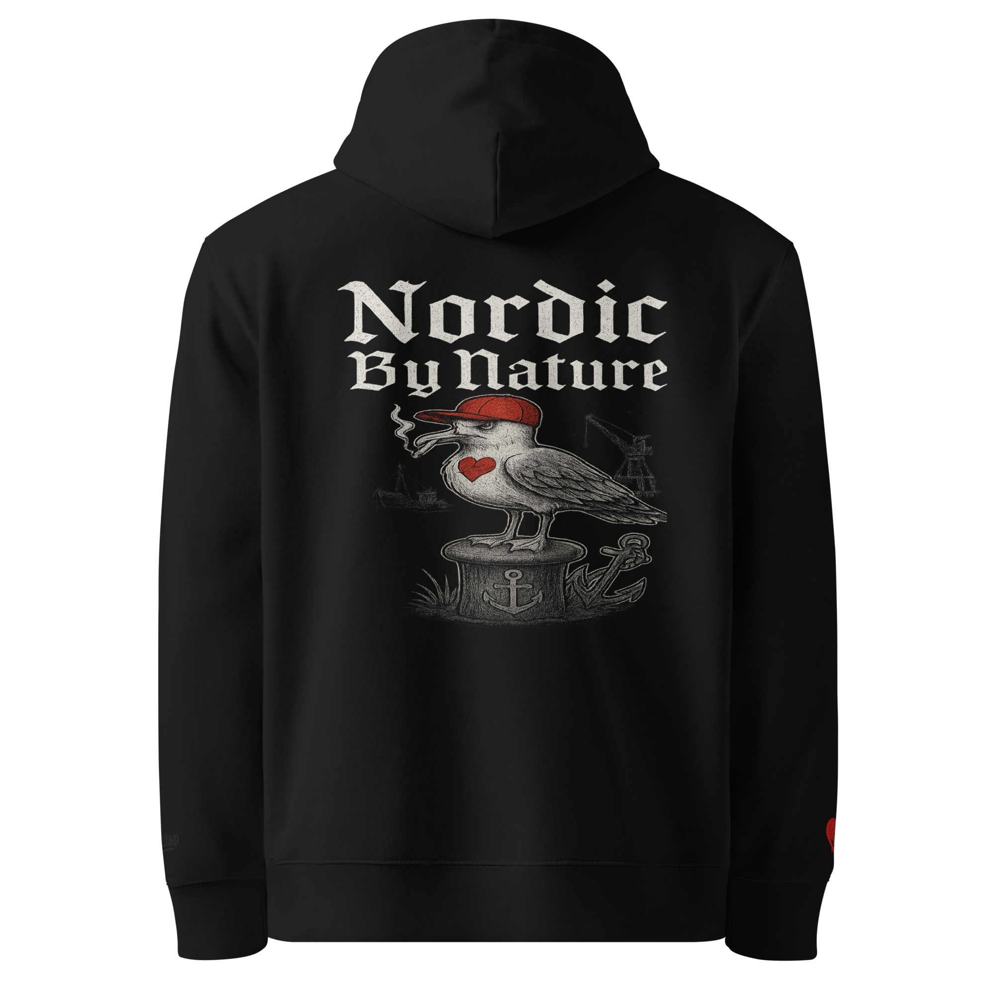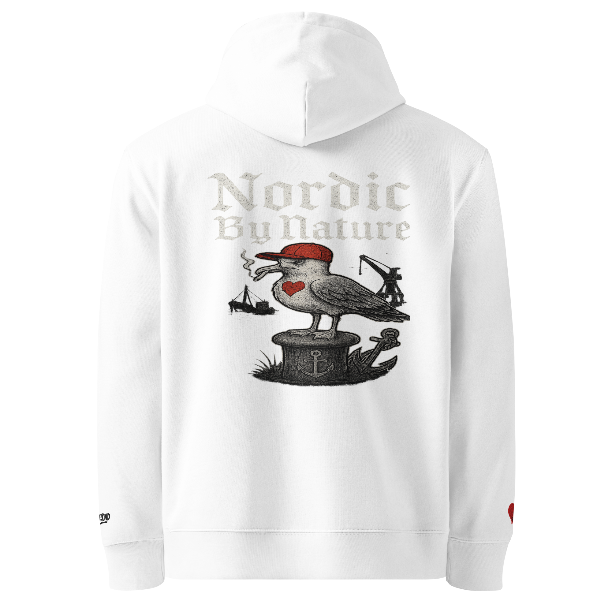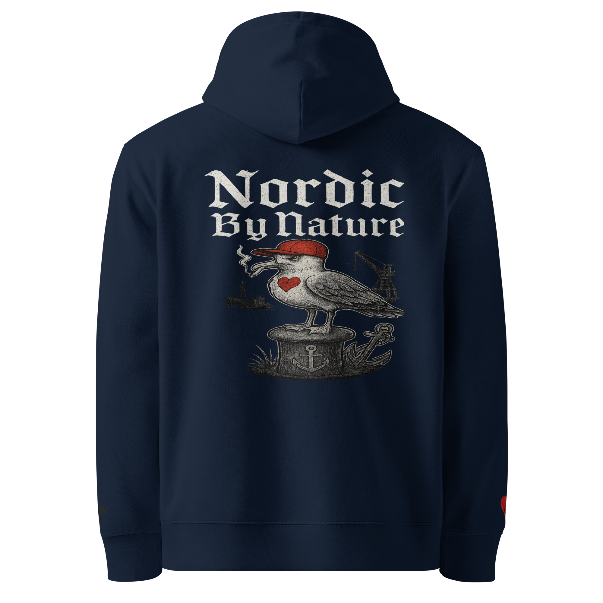 Der „Nordic by Nature“ Hoodie vereint klare Streetwear-Linien mit hanseatischer Haltung. Dezente Stickdetails auf Brust und Ärmel treffen auf einen markanten Rückenprint – für alle, die den Norden nicht nur fühlen, sondern leben.