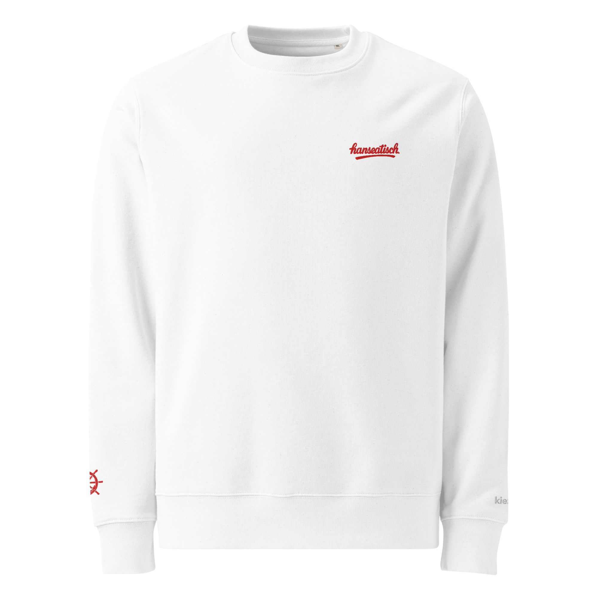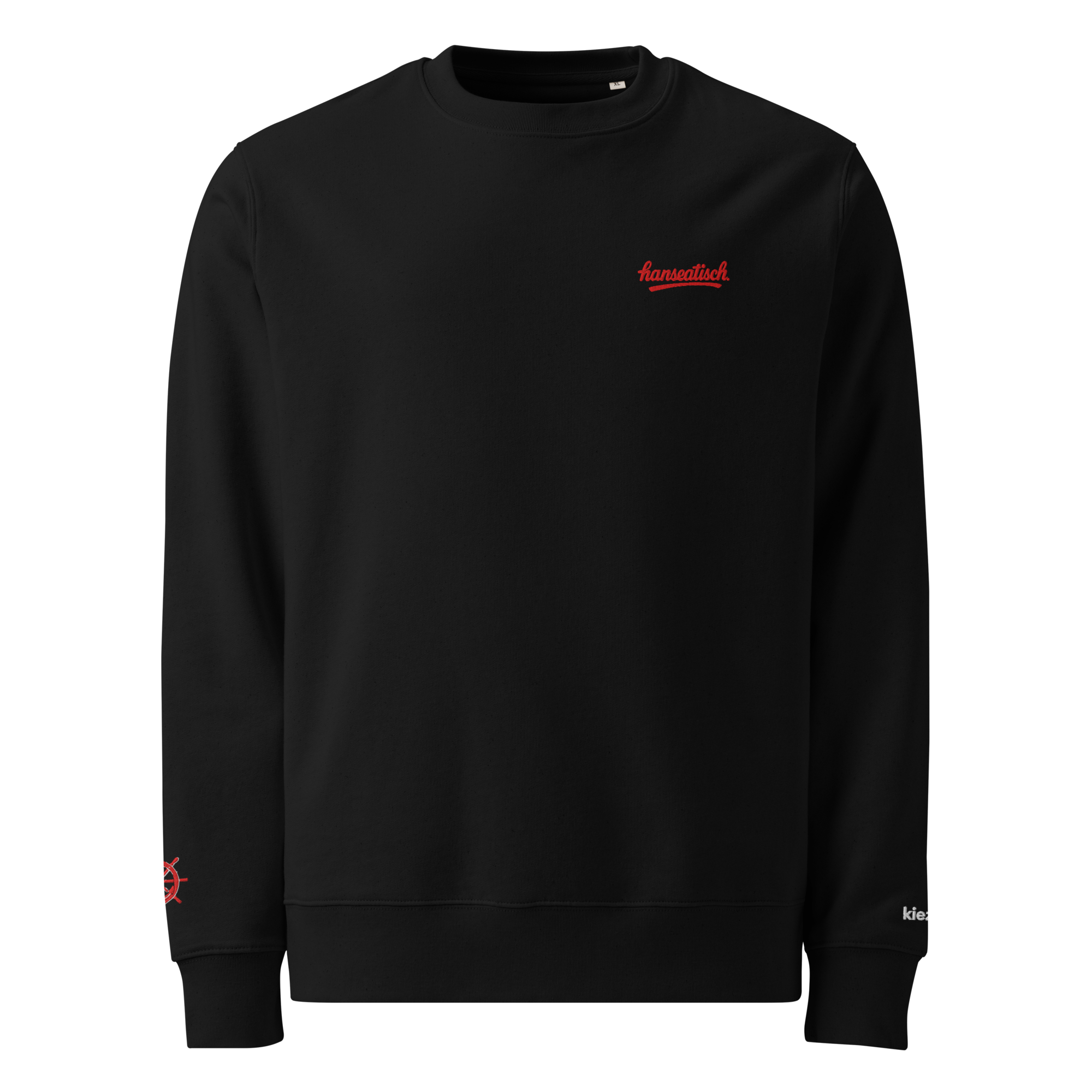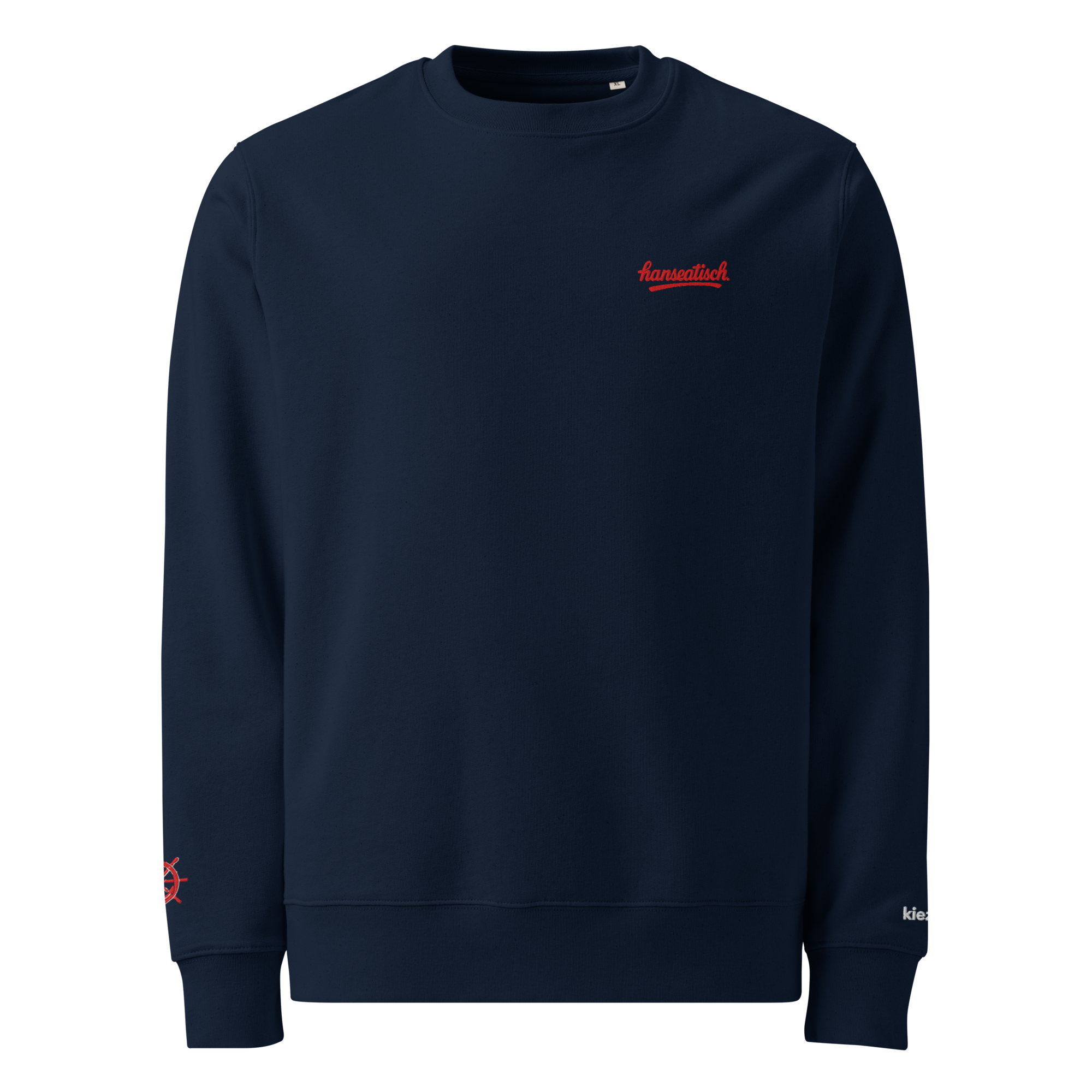 Der „hanseatisch.“ Sweater steht für nordische Klarheit und minimalistischen Style. Vorne trägt er den dezenten Stick „hanseatisch.“, während ein kleines Steuerrad mit Anker am Ärmel einen feinen maritimen Akzent setzt. Die Rückseite bleibt clean – hanseatisches Understatement pur.